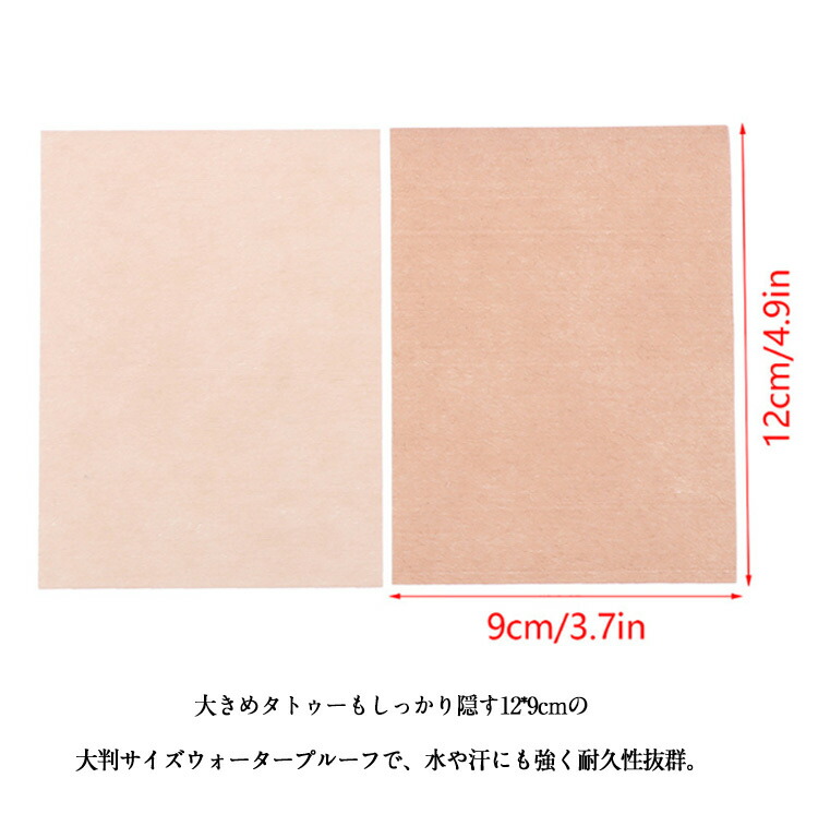 大きめタトゥーもしっかり隠す12*9cmの大判サイズウォータープルーフで、水や汗にも強く耐久性抜群。