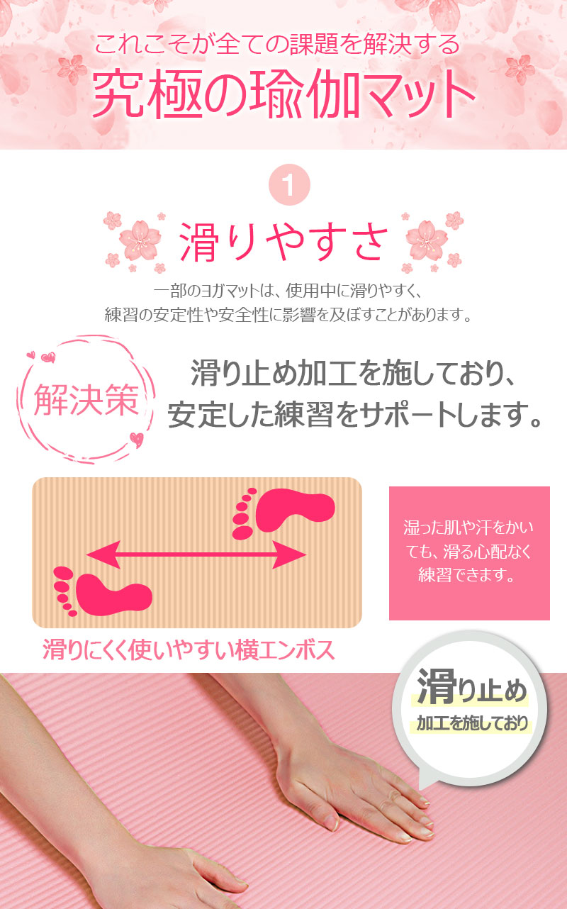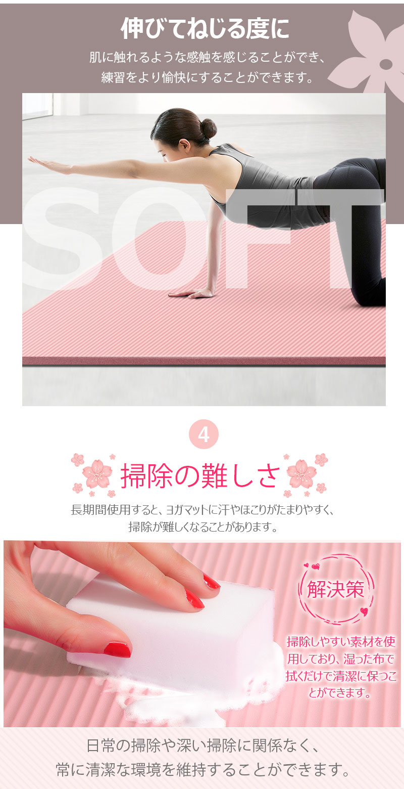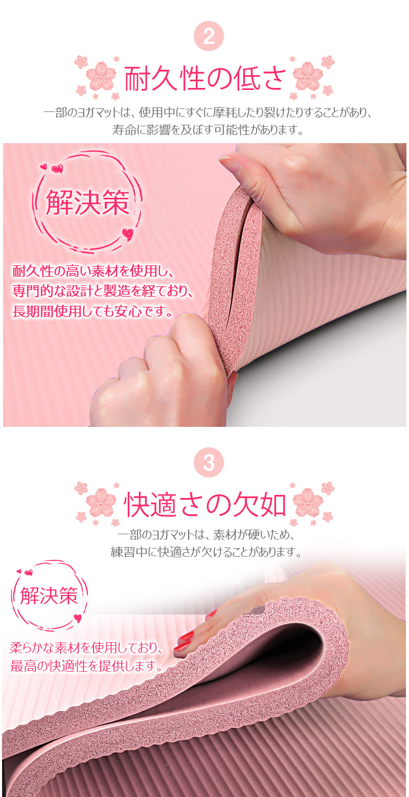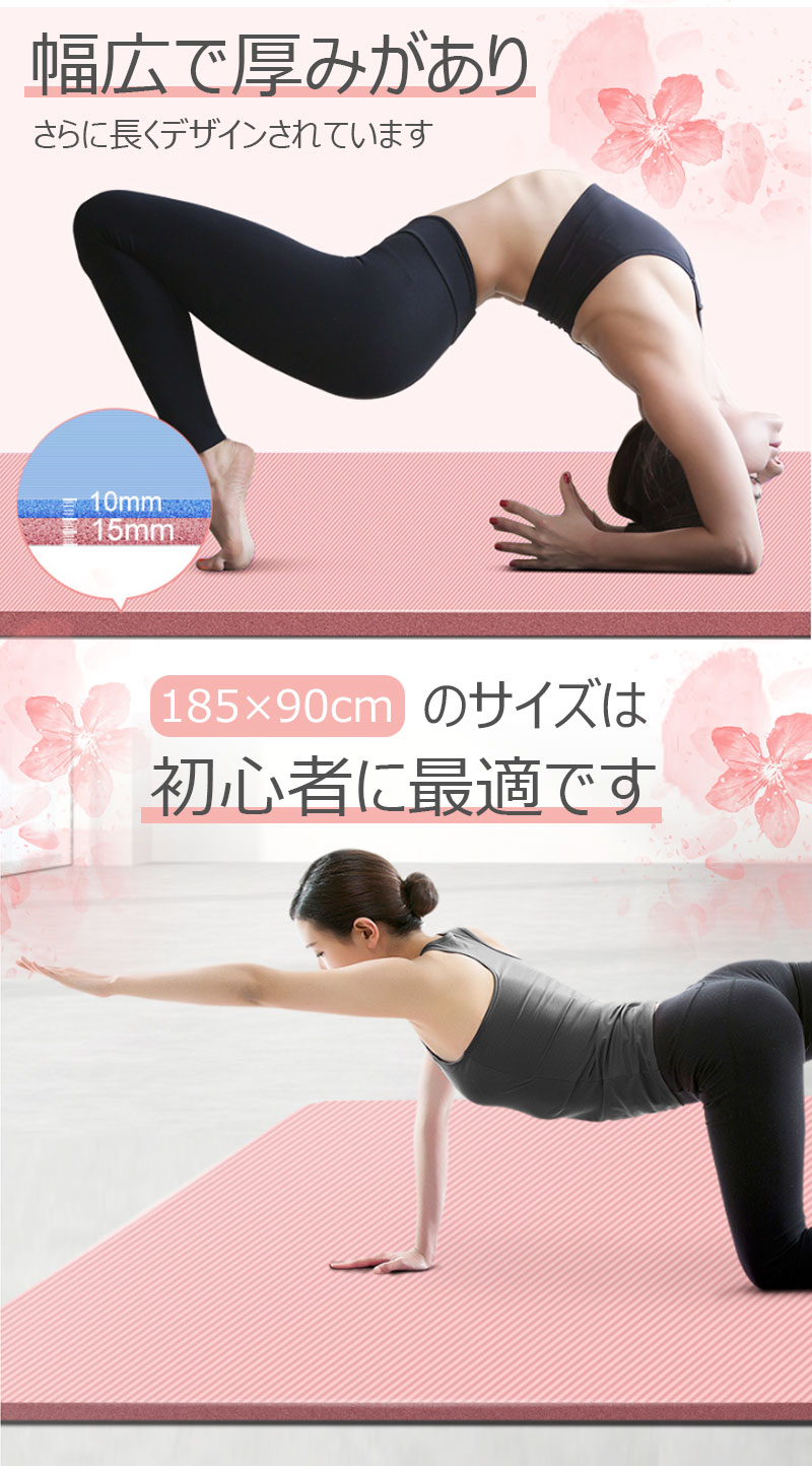 運動 マット 6サイズ ヨガマット トレーニングマット 15mm 20mm ピラティス 室内運動 収納バンド パープル フィットネスマット ブラック ピンク エクササイズ yoga 腹筋 脚痩せ 器具