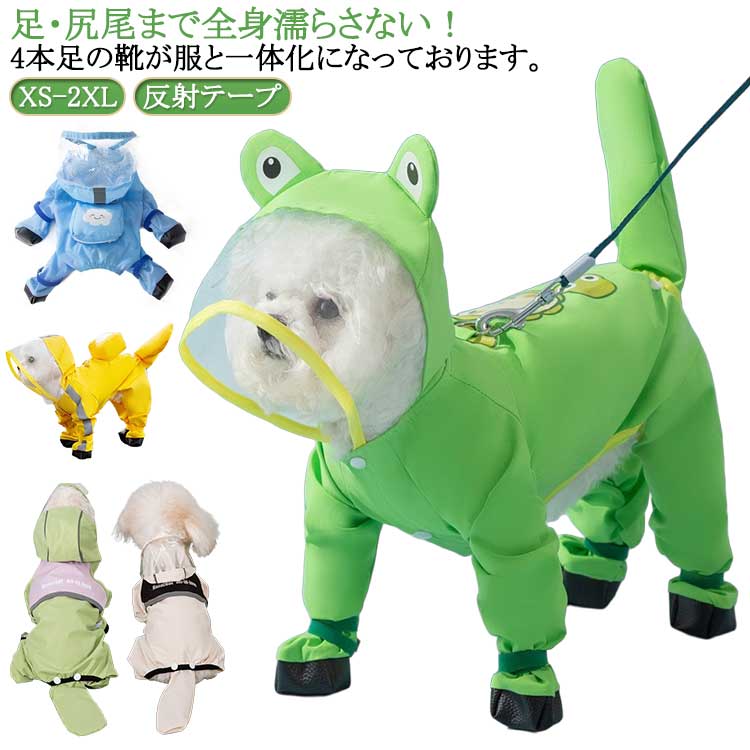 濡れない 犬用レインコート フード付き 雨具 全身フルカバー 犬 レインコート 小型犬 つば 大型犬 靴付き 柴犬 着せやすい フェース濡れない