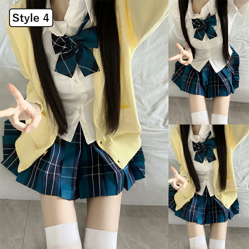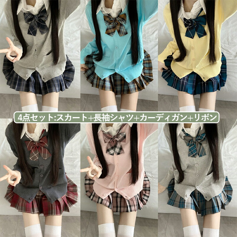 制服 学生服 スクール 女の子 レディース 4点セット jk スクールウェア 入学式 卒業式 中学生 高校生 女子高生 コスプレ 仮装 衣装 スカート シャツ カーディガン リボン チャックスカ 長袖