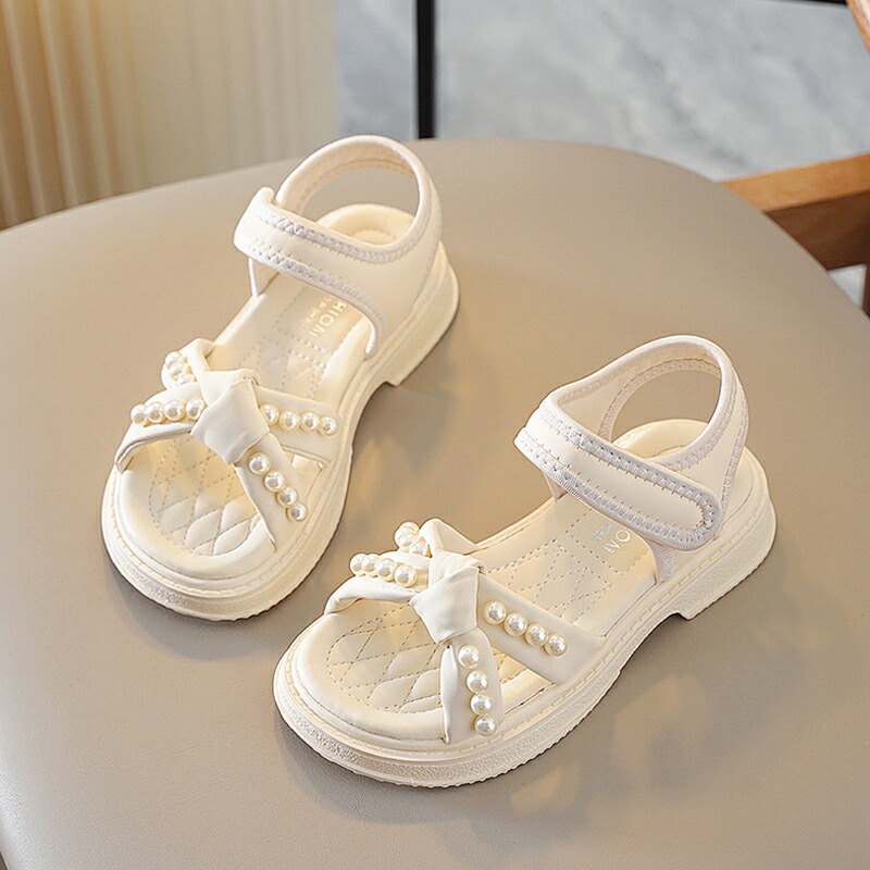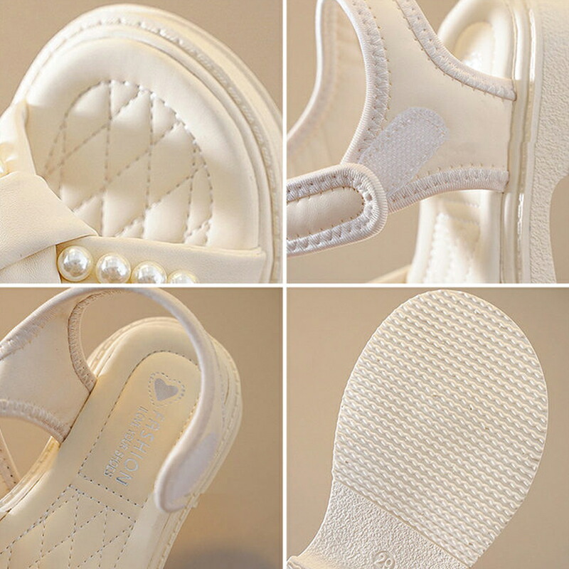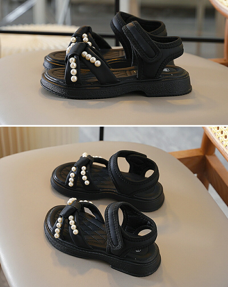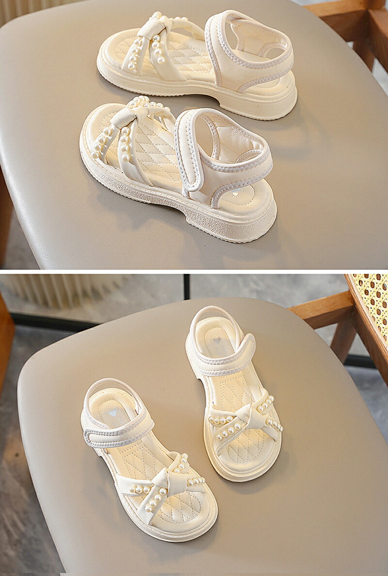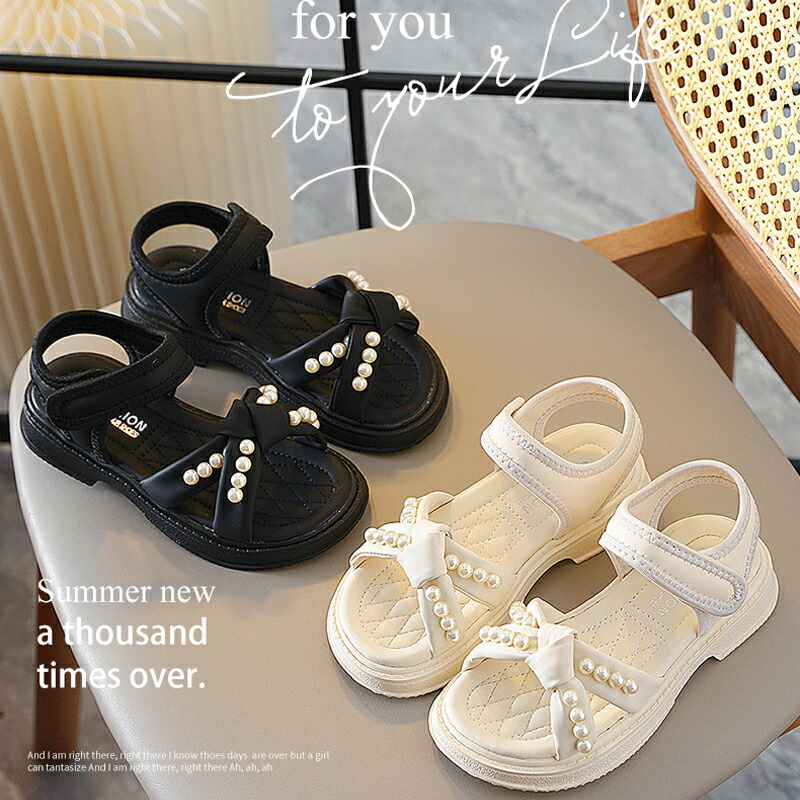 サンダル 子供靴 女の子 ジュニア 子供 キッズ 夏 夏用 ビーチサンダル 子供サンダル パール付き マジックテープ 厚底 軽量 滑り止め 歩きやすい 柔らかい カジュアル 美脚 お おしゃれ