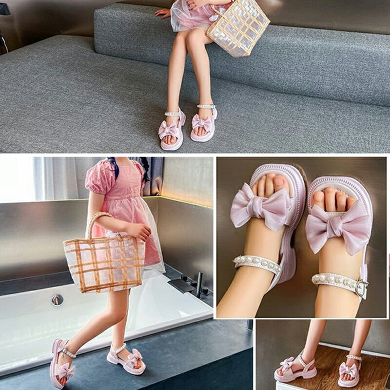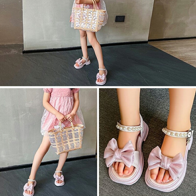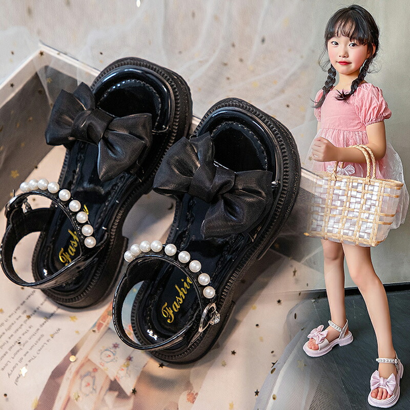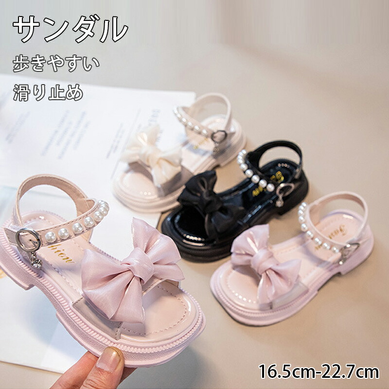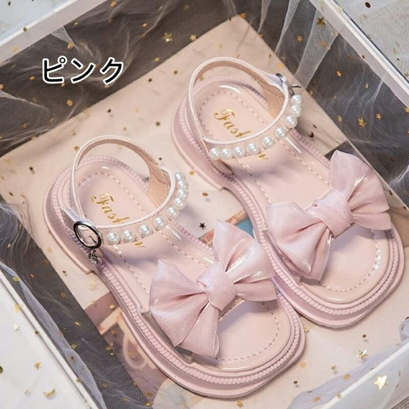サンダル 夏 夏用 子供靴 女の子 ジュニア 子供 キッズ ビーチサンダル 子供サンダル パール付き 蝶リボン 厚底 軽量 滑り止め 歩きやすい 痛くない 柔らかい カジュアル 美脚 お姫様 おしゃれ