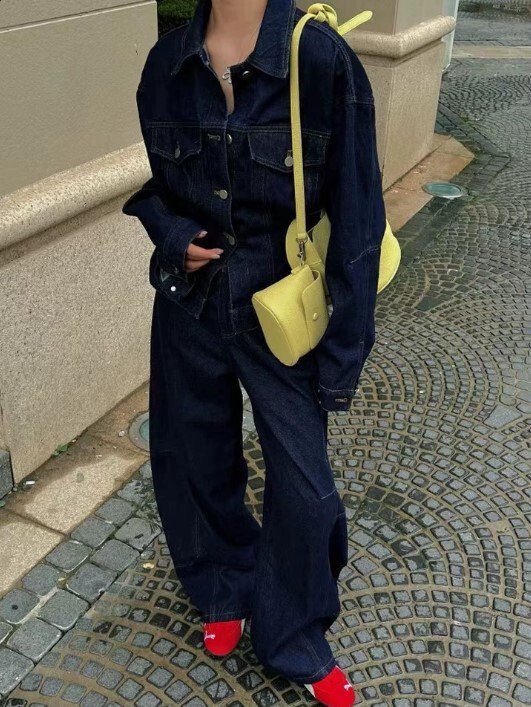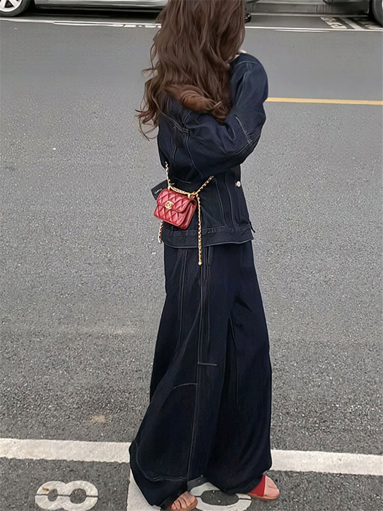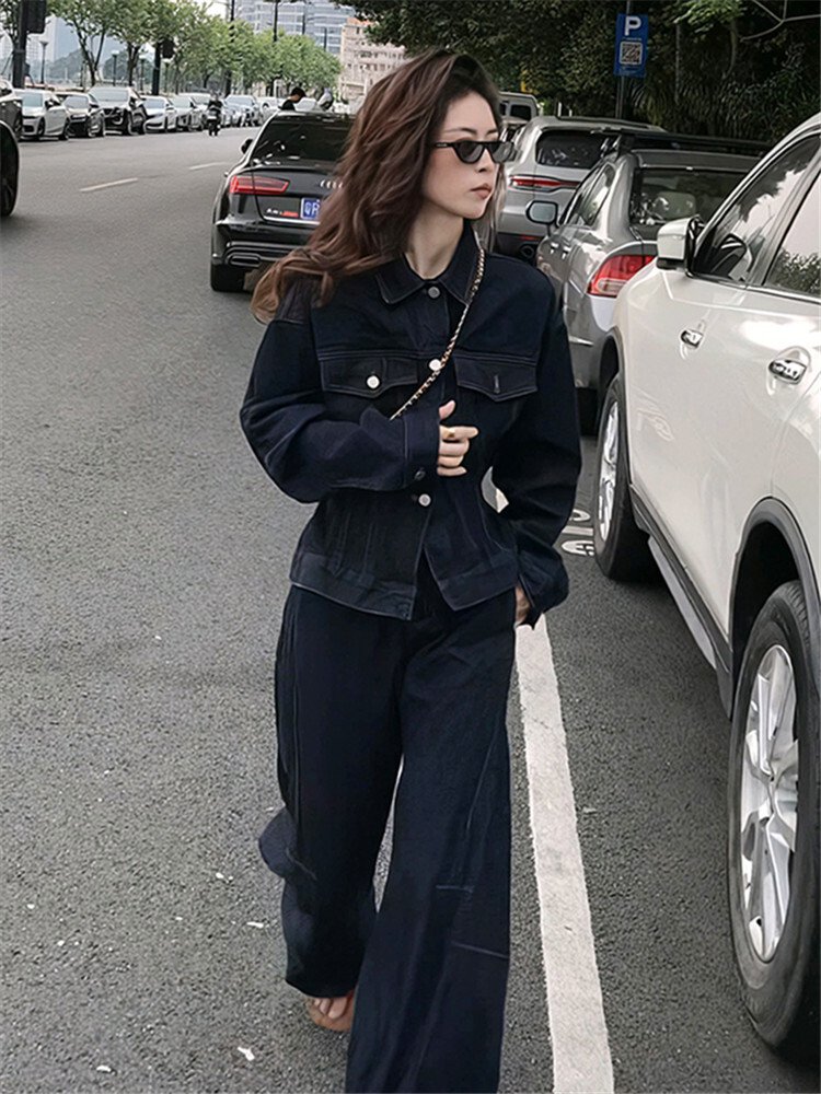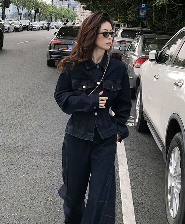 デニムセットアップ レディース デニムジャケット デニムワイドパンツ 上下セット ブルージーンズ こなれ感 マニッシュスタイル 韓国 20代 30代 ファッション 大人カジュアル 40代