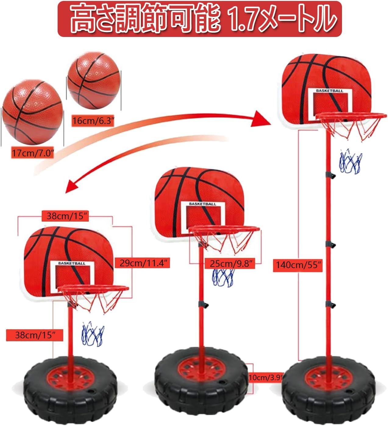 ミニ バスケットゴール バスケットボールセット子供用 バスボールスタンド サイズ1.3m 1.5m 1.7m 2.0m 高さ調整可能 二つボール付き 室内 ポータブル 安定性 バスケの練習用 屋外兼用