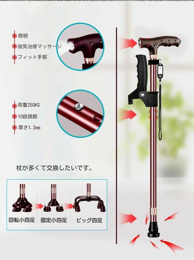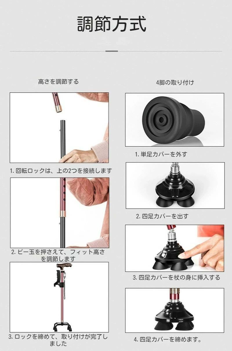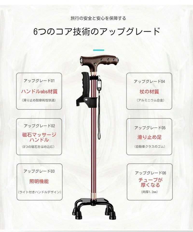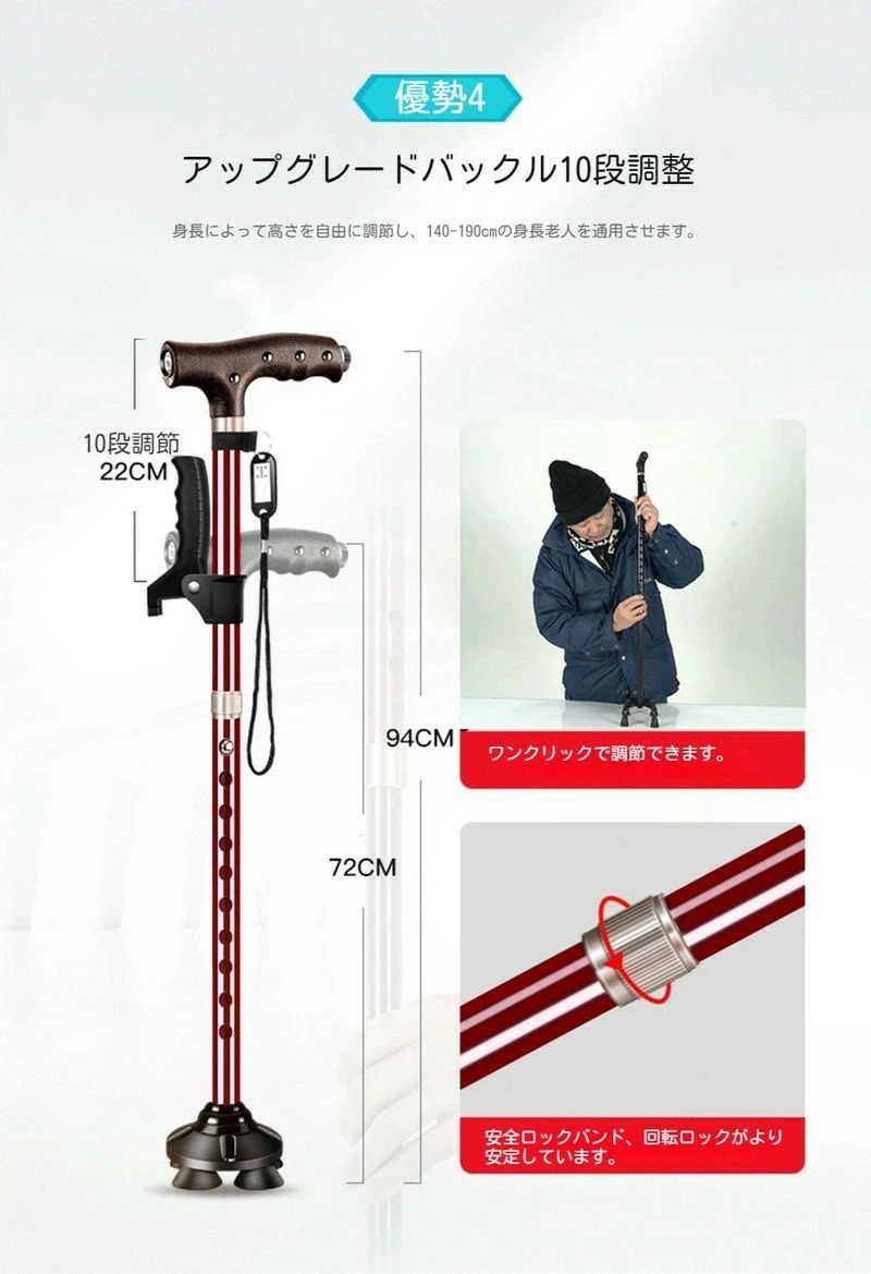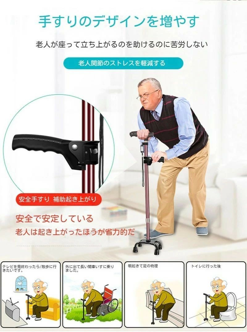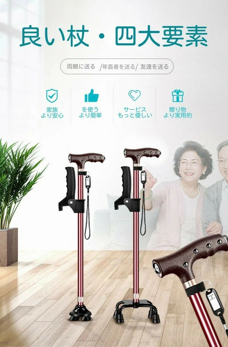 つえ 杖 軽量 自立式 4点杖 介護 介護杖 自立 軽量杖 伸縮式 ステッキ 介護用品 おしゃれ杖 敬老の日 プレゼント 四点杖