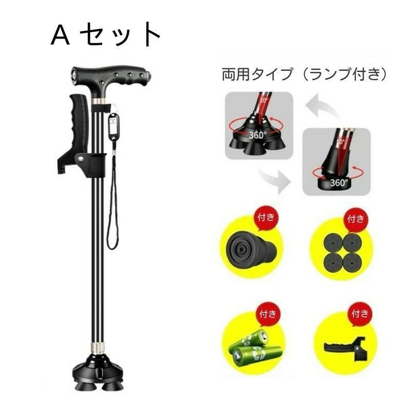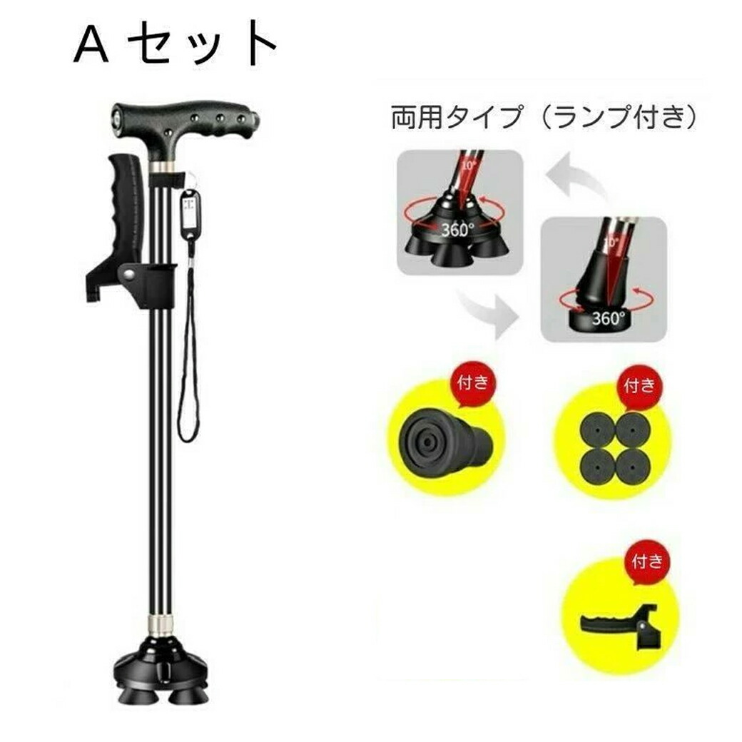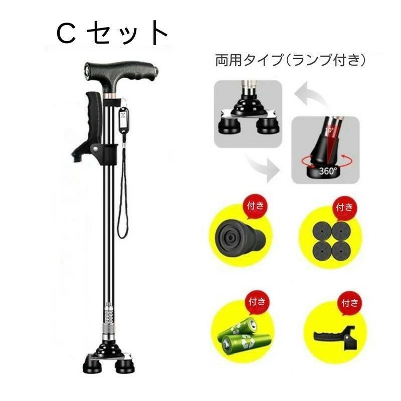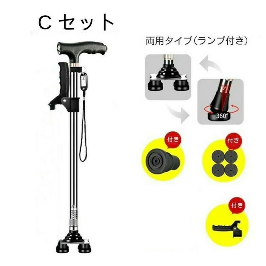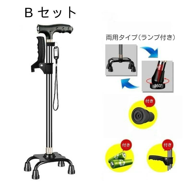 つえ 杖 軽量 自立式 4点杖 介護 プラック ワインレッド A セット B セット C セット