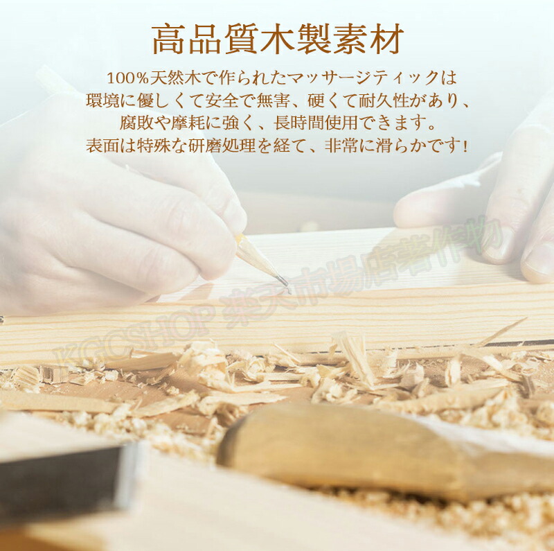 100%天然木で作られた、環境に優しくて安全で無害、皮膚にもアレルギー反応を引き起こしません。ローラーの長さ:約38.4cm、重量はわずか440gで使用だけではなく持ち運びも便利です。オフィスや自宅で、テレビを見ながらマッサージできます