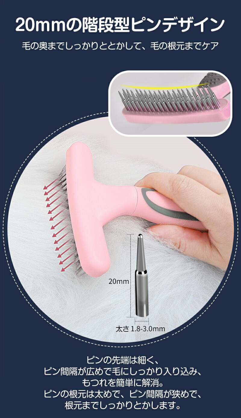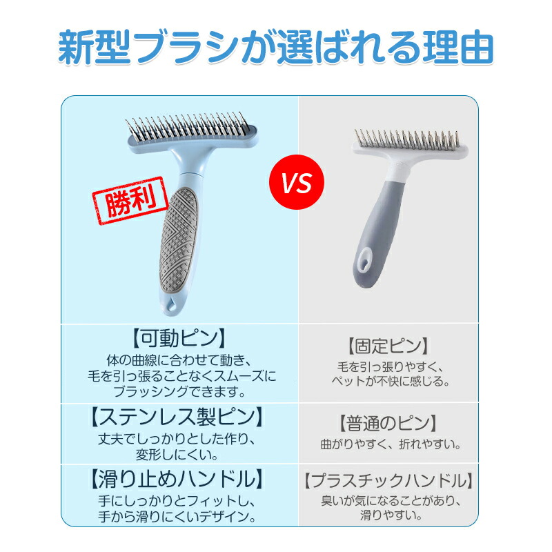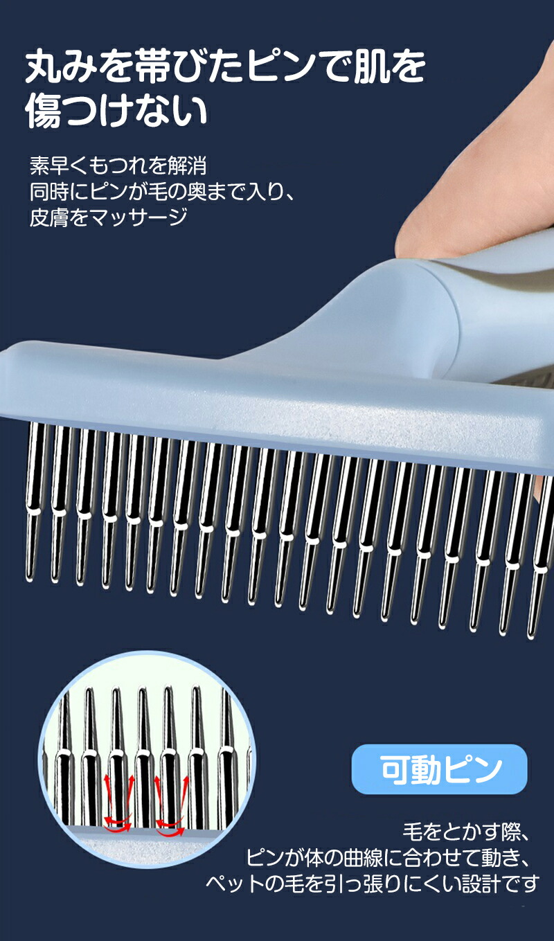 ペットブラシ 犬ブラシ 猫ブラシ 抜け毛取り 可動ピン 痛くない 犬 猫 ブラッシング 抜け毛 換毛期 短毛 長毛 毛取り簡単 くし 中型犬 大型犬 滑り止めハンドル付き 毛玉解消 毛玉取り 肌ケア