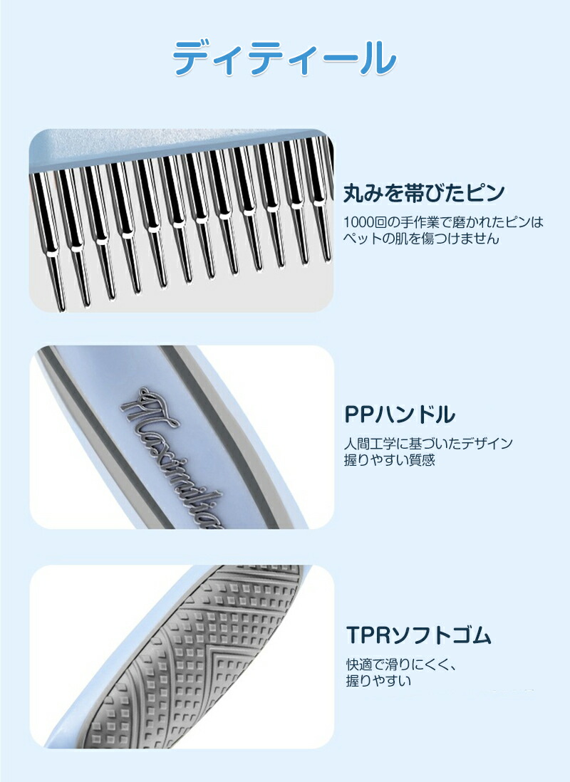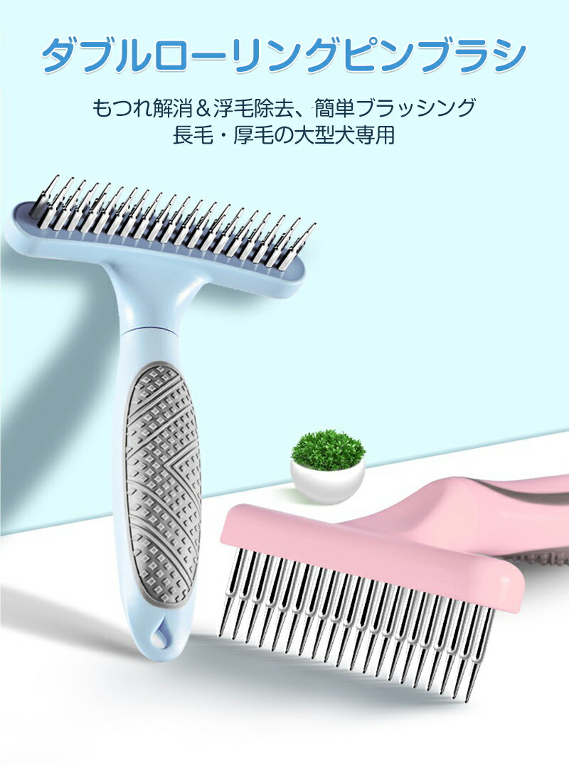 プロ級デシェッディング - 二段交差ステンレス針が浮き毛毛玉を97%除去(サモエドゴールデン等ダブルコート犬種最適)