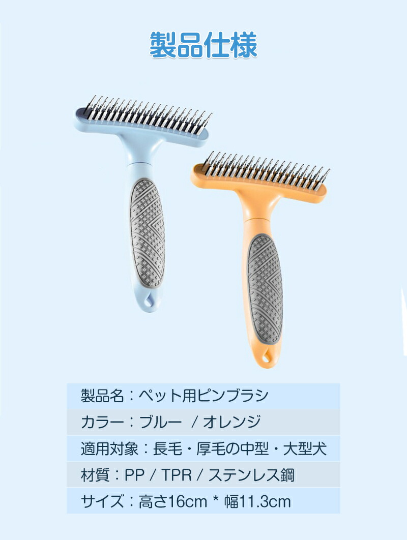 ペットブラシ 犬ブラシ 猫ブラシ 抜け ブルー オレンジ