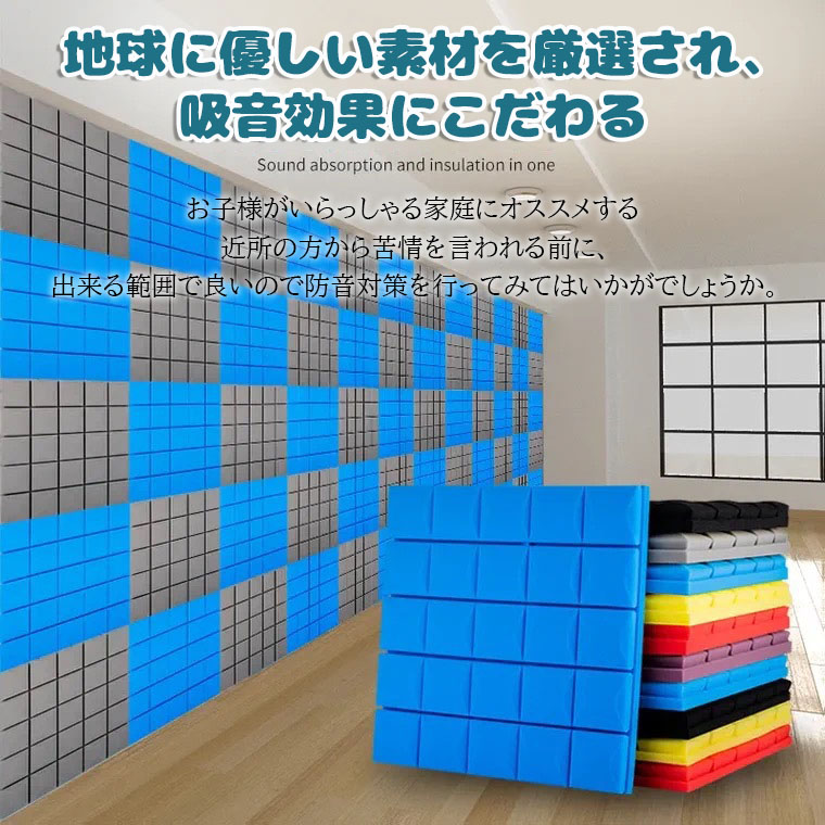 防音シート 壁 床 吸音材 遮音シート ブラック レッド イエロー ブルー グリーン パープル グレー ホワイト 5枚セット 10枚セット 12枚セット 20枚セット 30枚セット 40枚セット