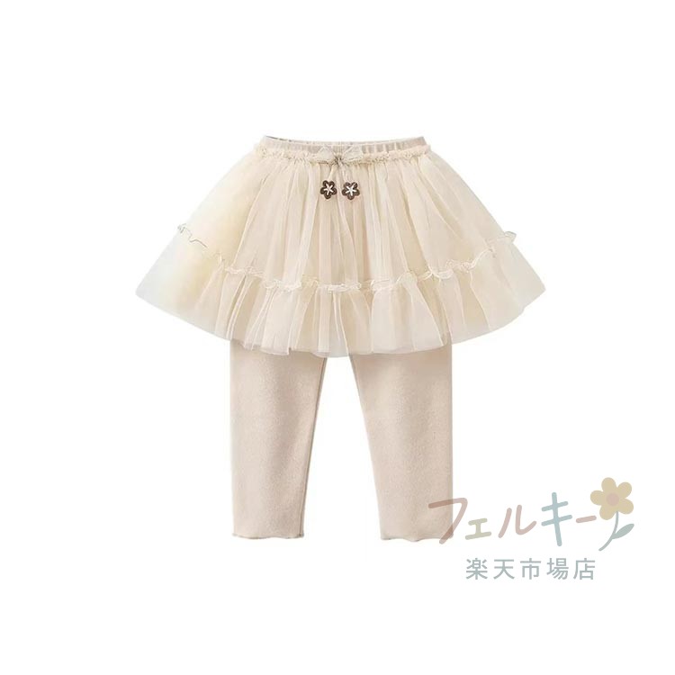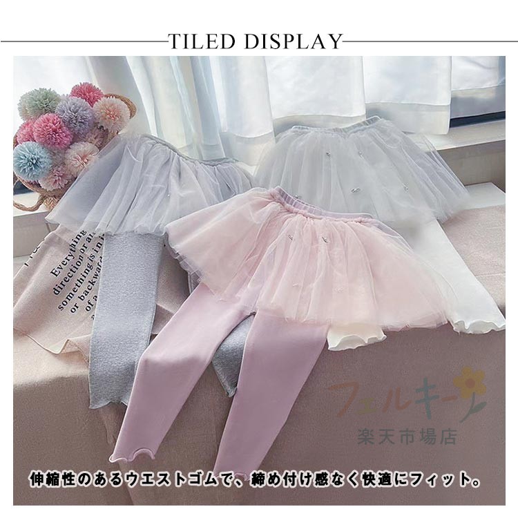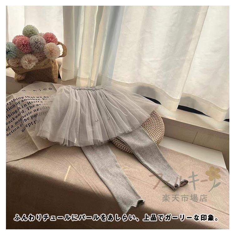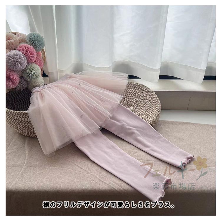 チュール付きレギンス キッズ 女の子 パール付き ふんわりチュールスカート スパッツ 通学 ベビー服 子供用 ボトムス おしゃれ