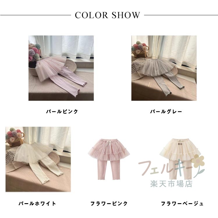 チュール付きレギンス キッズ 女の子 キッズ 靴下 タイツ スパッツ レギンス 早い者勝ち パールピンク パールグレー パールホワイト フラワーピンク フラワーベージュ 90cm 100cm 110cm 120cm 130cm 140cm