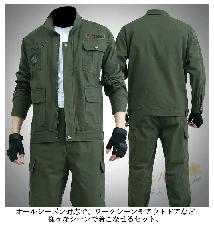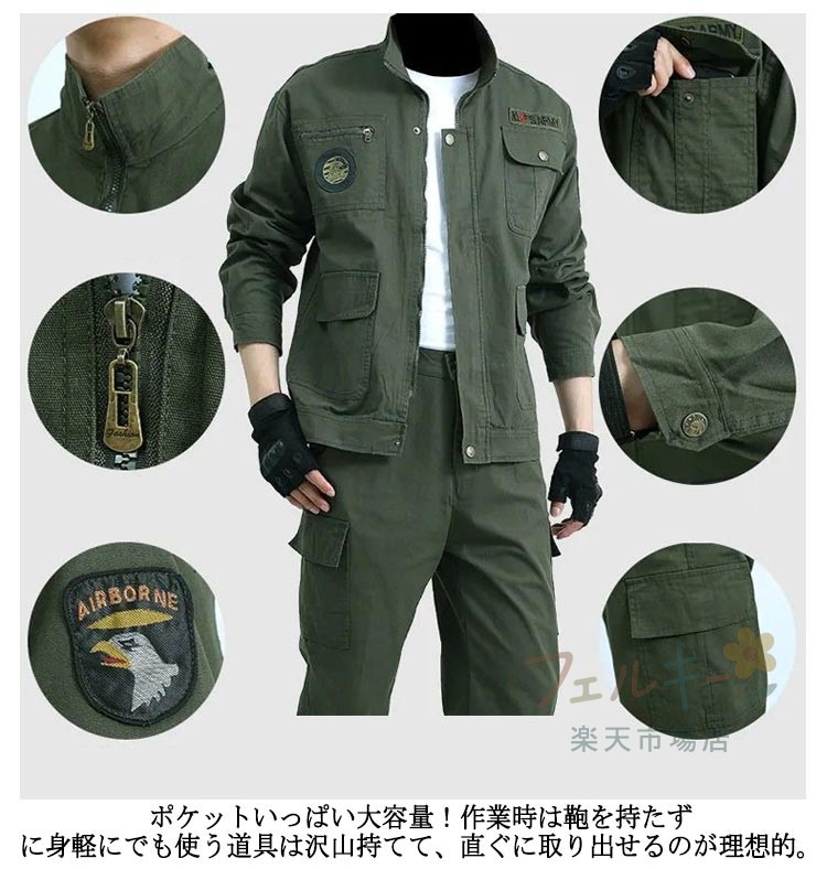大きいサイズ 作業服 アウトドア メンズ 耐磨耗 上下セット 長袖 カーゴパンツ 制電ジャケット ワークウェア 通年着用 動きやすい マルチポケット 機能性