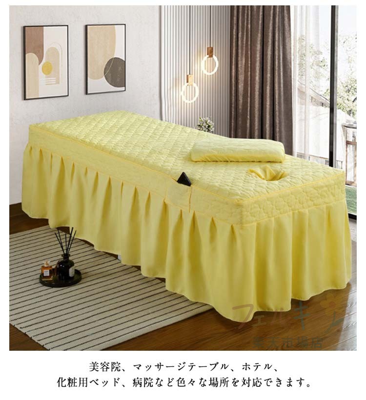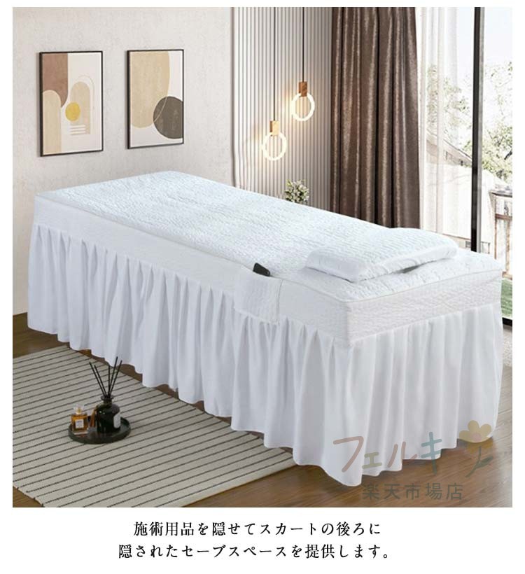 ベッドスカート フリル付き ラウンド 施術ベッドカバー エステベッドカバー サロン 美容院 呼吸穴付き サイドポケット 整体