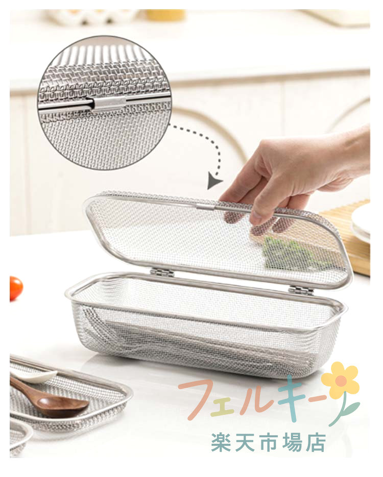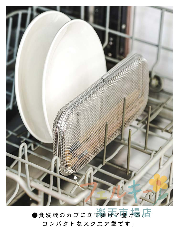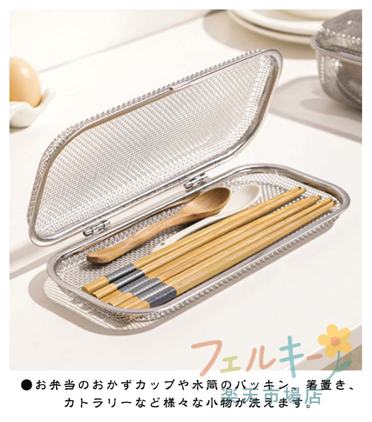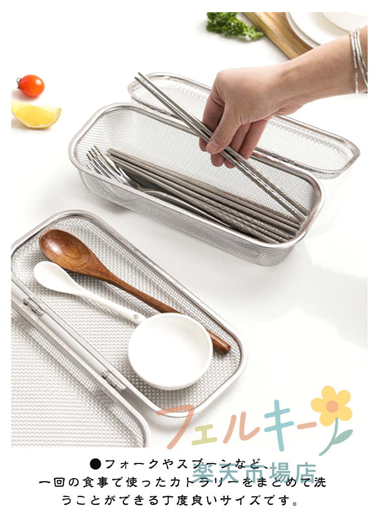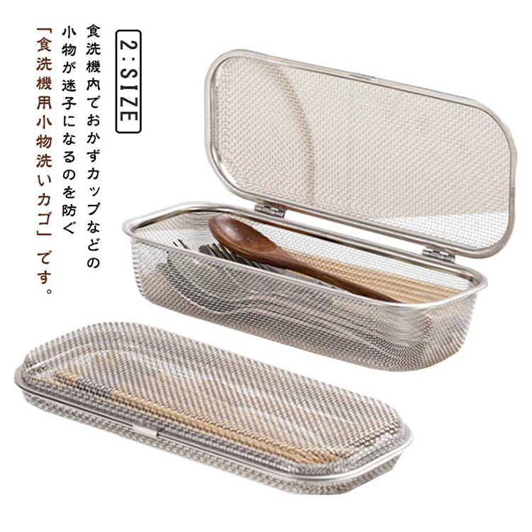 メッシュカゴ 食洗機用 小物洗いカゴ ステンレス製 キッチン用品 カトラリー収納 水切り可能 小物入れ