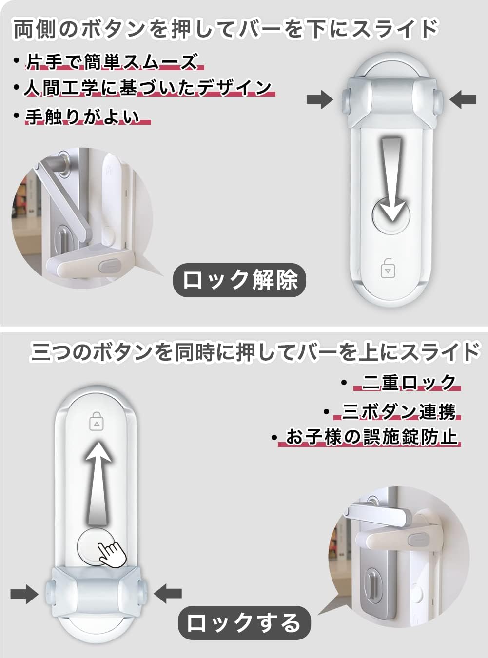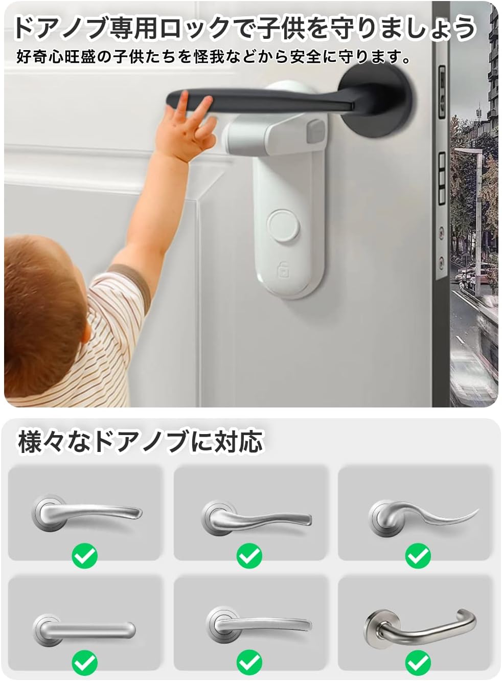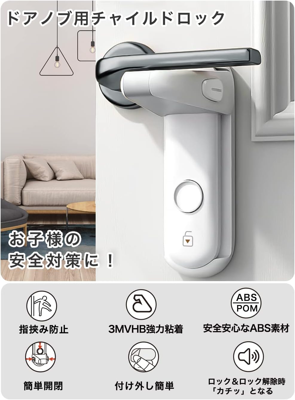 ドアノブ ロック ドアロック 赤ちゃん チャイルドロック 指はさみ防止 後付け ベビーガード ドア開け防止 猫 脱走防止 ノブ ドア専用 ベビーロック 鍵 安全 扉
