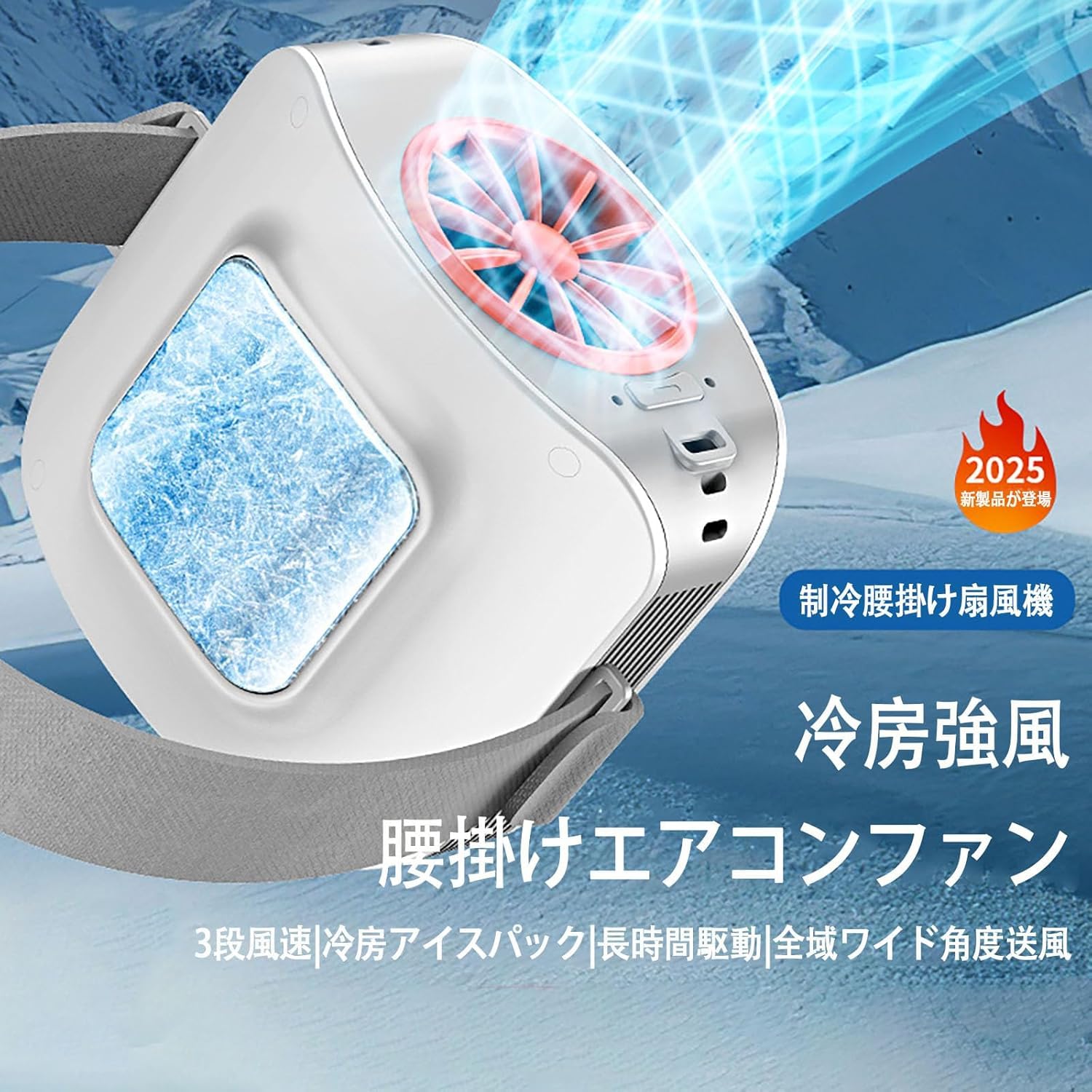 腰に装着するペルチェ冷却ファン 3段階 グレー ゴールド ネイビーブルー
