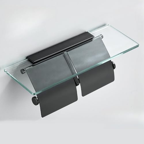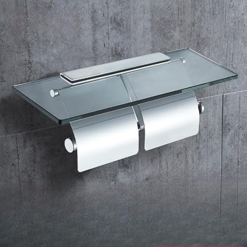 トイレット ペーパー ホルダー 棚付カワジュン ペーパーホルダーガラス棚付ダブルペーパー、取り付けが簡単、ステンレス鋼製バッフル ガラス