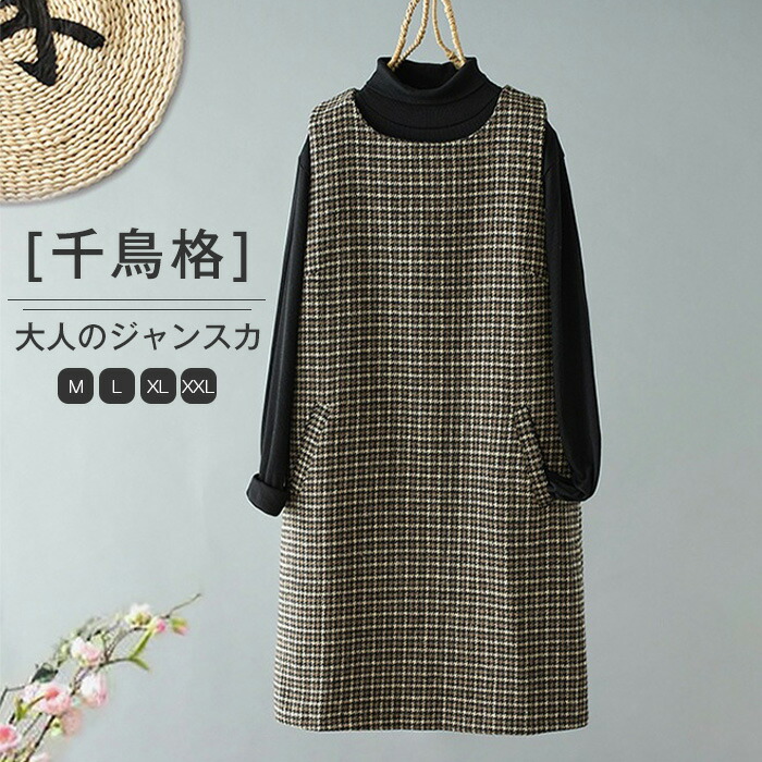 ジャンパースカート ワンピース 千鳥格 M L XL 2XL