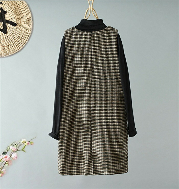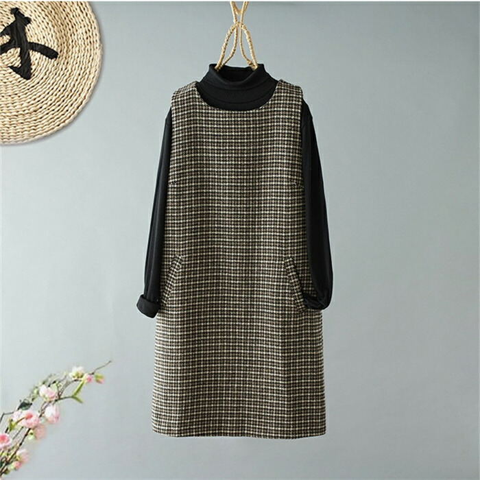 ジャンパースカート ワンピース 千鳥格 レディース 秋冬 ツイード ノースリーブワンピース ジャンスカ ベストワンピース サロペット きれいめ オフィス シンプル カジュアル レイヤード 重ね着 ゆったり お洒落 通勤 OL 大人 通勤 日常 ディリー