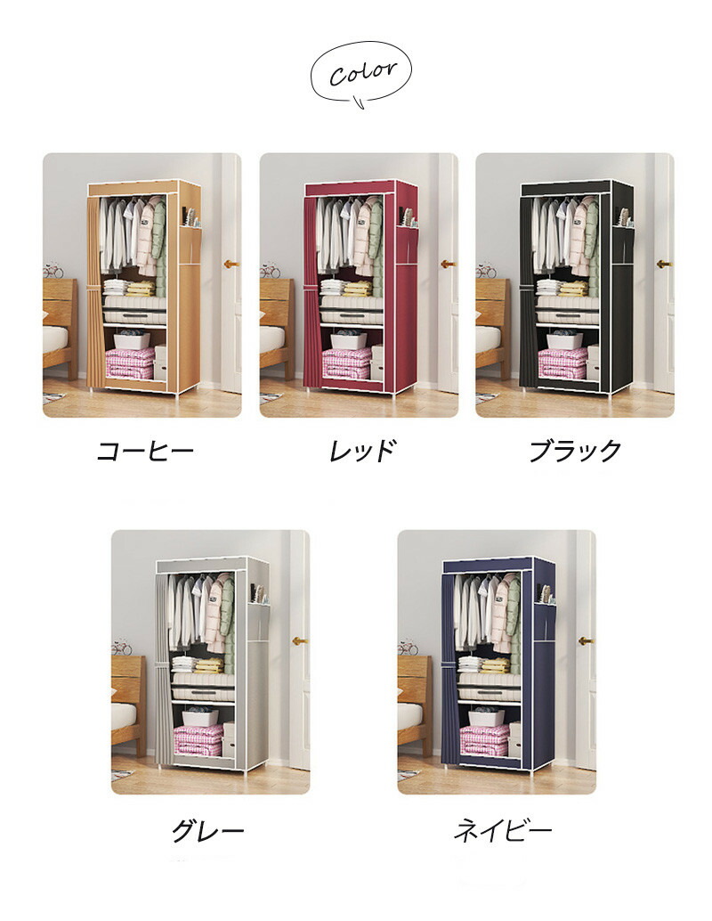 ハンガーラック カバー付き ワードロー コーヒー レッド ブラック グレー ネイビー