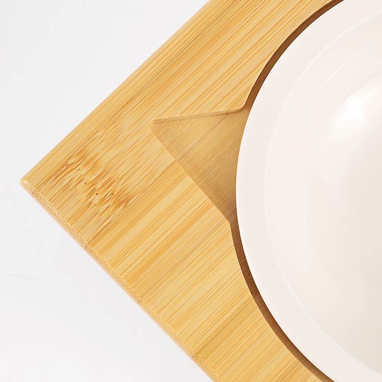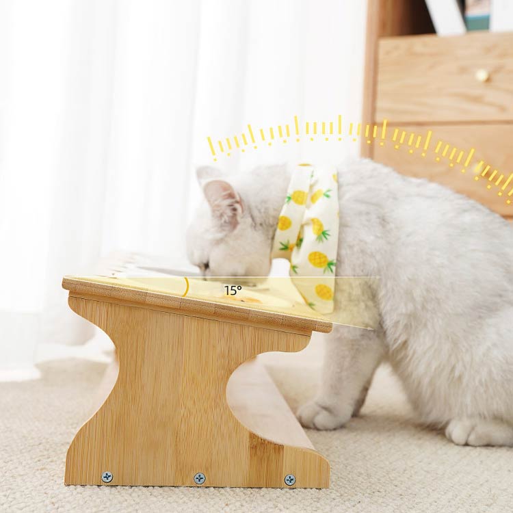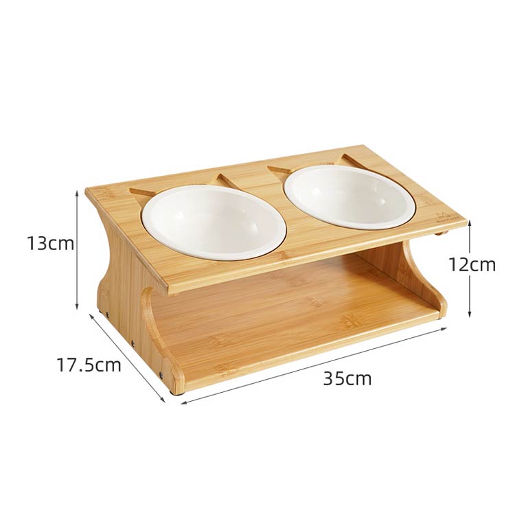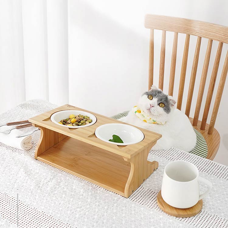 猫 猫エサ入れ ペット食器台 おしゃれ 陶器皿付き スタンド 台 フードボウルスタンド ご飯 かわいい フードスタンド ダブル 傾斜 餌皿 フードボウル 餌台 餌入れ 食器台 食器 竹製