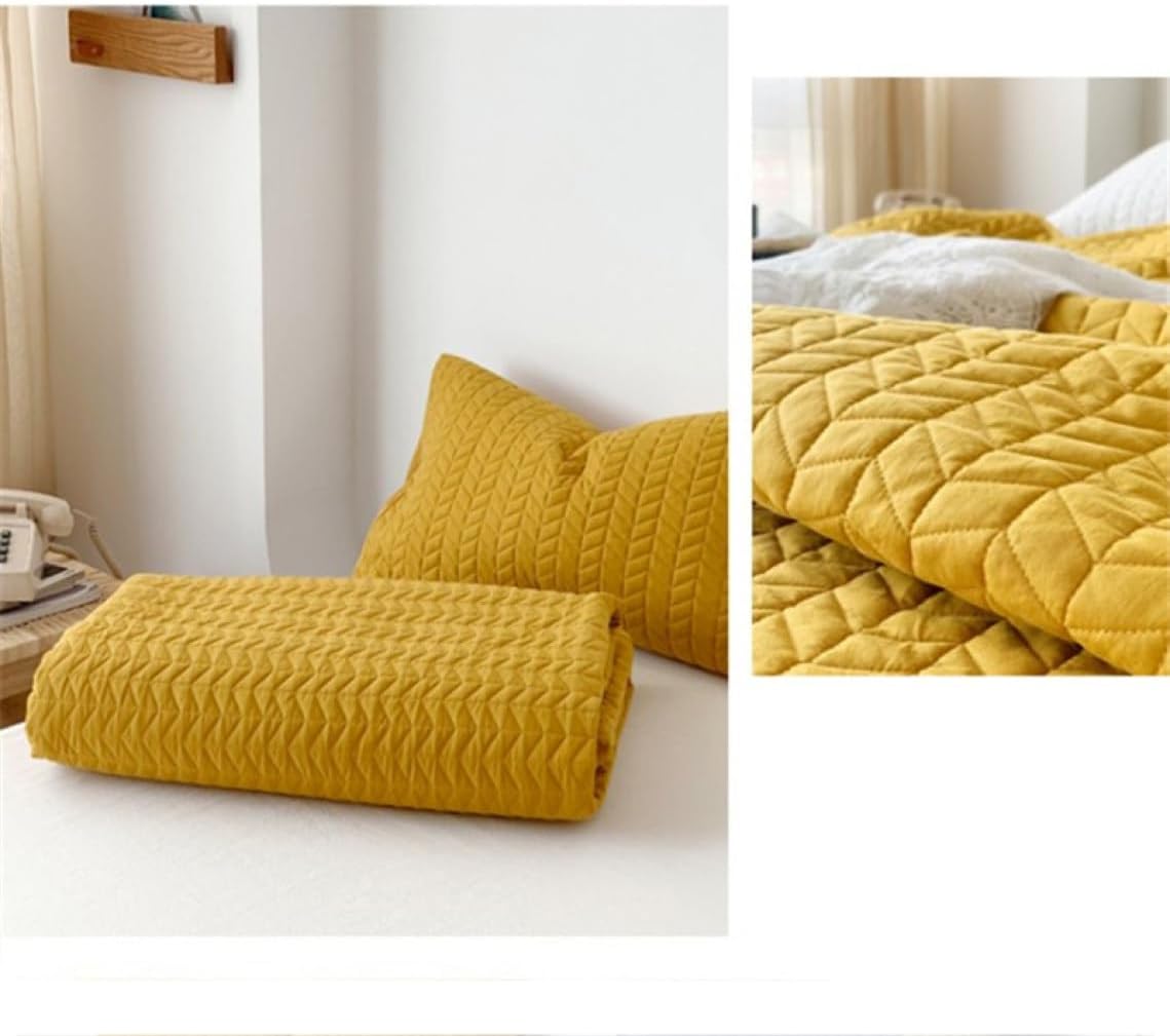 キルトケット マルチカバー 黄色い ベッドカバー シーツカバー 北欧 おしゃれ 冬用ベッドカバー 寝具用品 キルト 四季通用 チエック ベッドカバー単品 200*230cm シングル セミダブル 冬