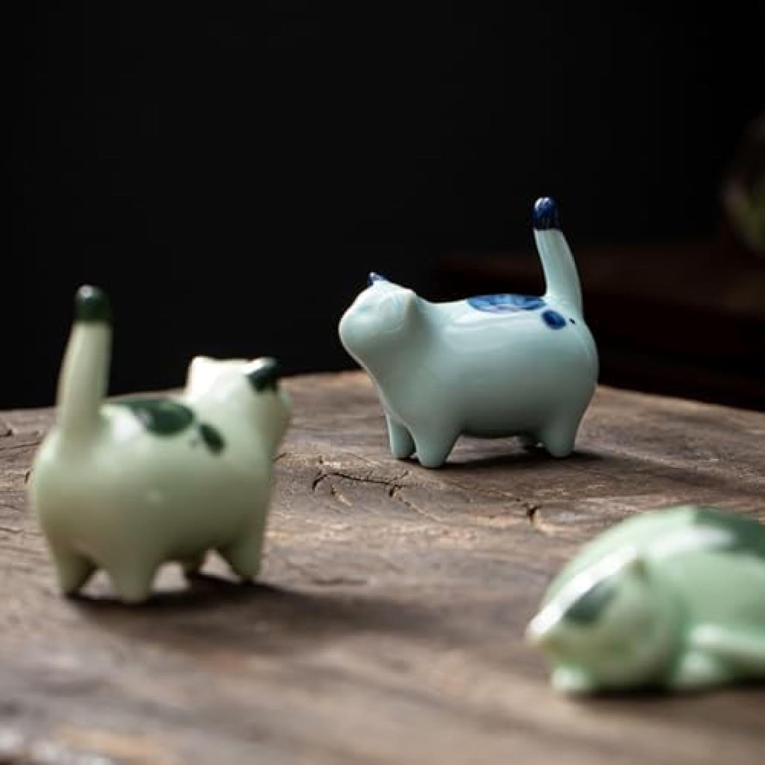 かわいい猫の陶器置物 - リビング飾りや部屋のインテリアに最適なおしゃれな飾り物。退職や祝日、お年祝いにもピッタリな小さなプレゼント。北欧風の面白くて可愛いデザイン。