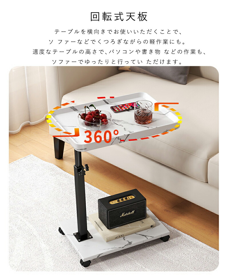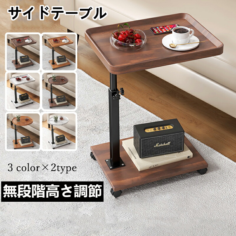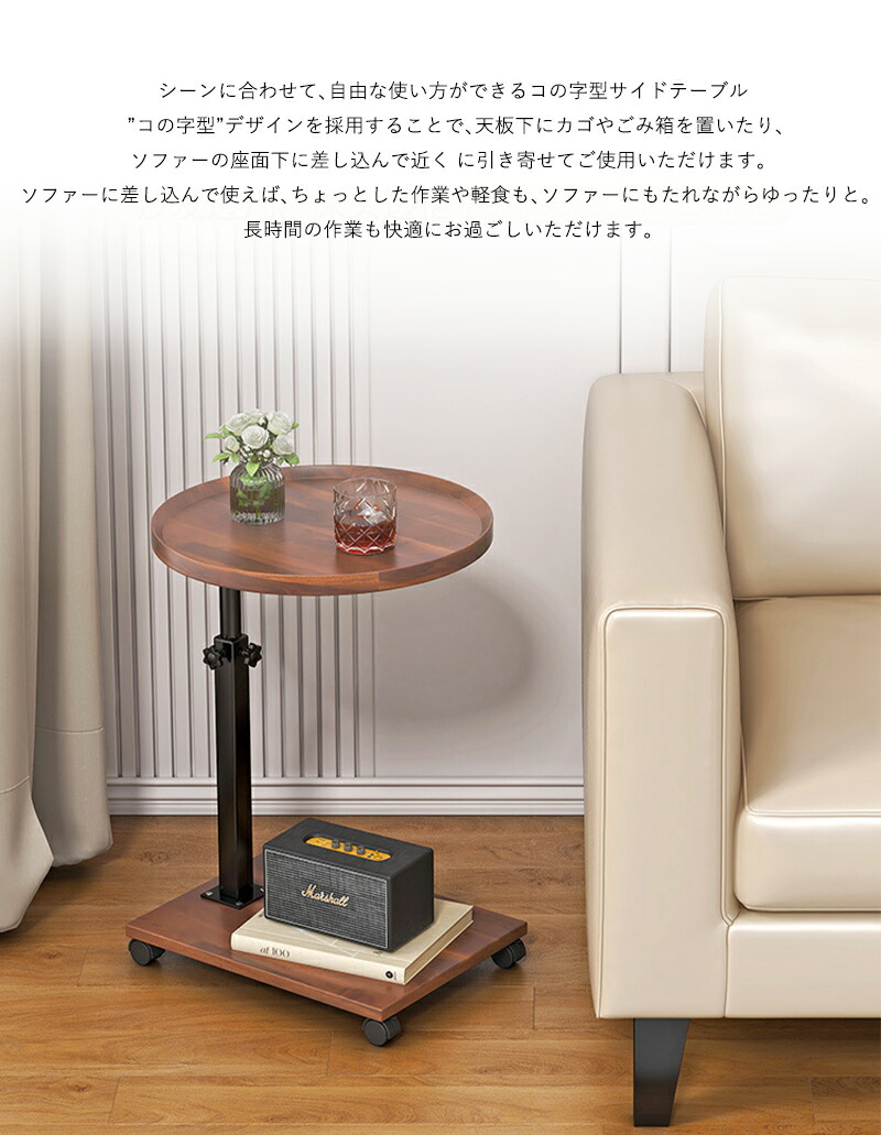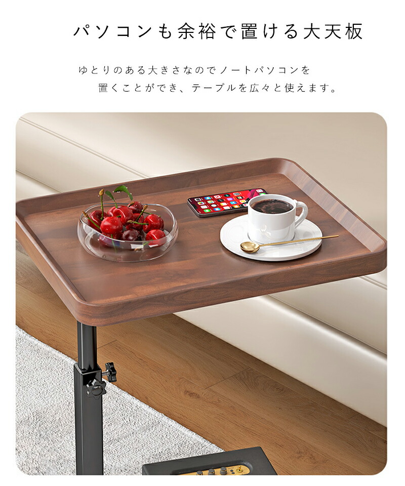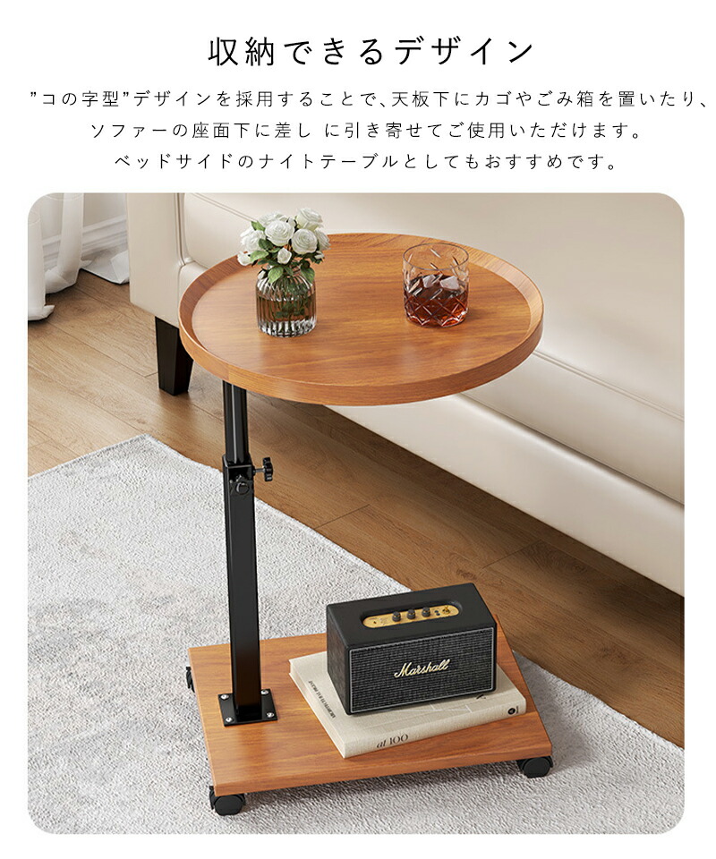 サイドテーブル キャスター付き ベッドサイド テーブル 昇降式 木目調 簡易テーブル コの字型 高さ調節可能 移動便利 ナイトテーブル 一人暮らし 食卓 小型 小さい