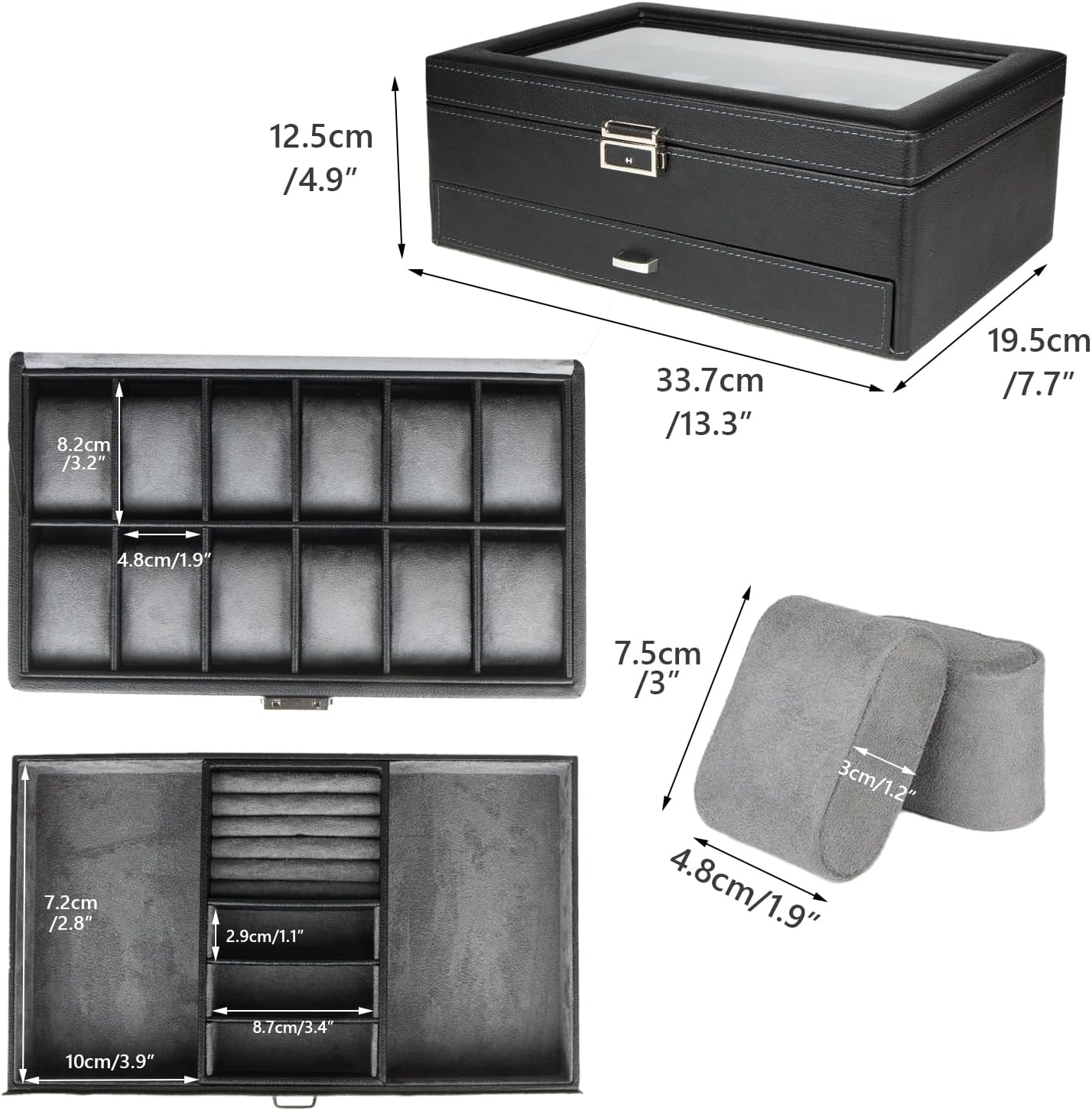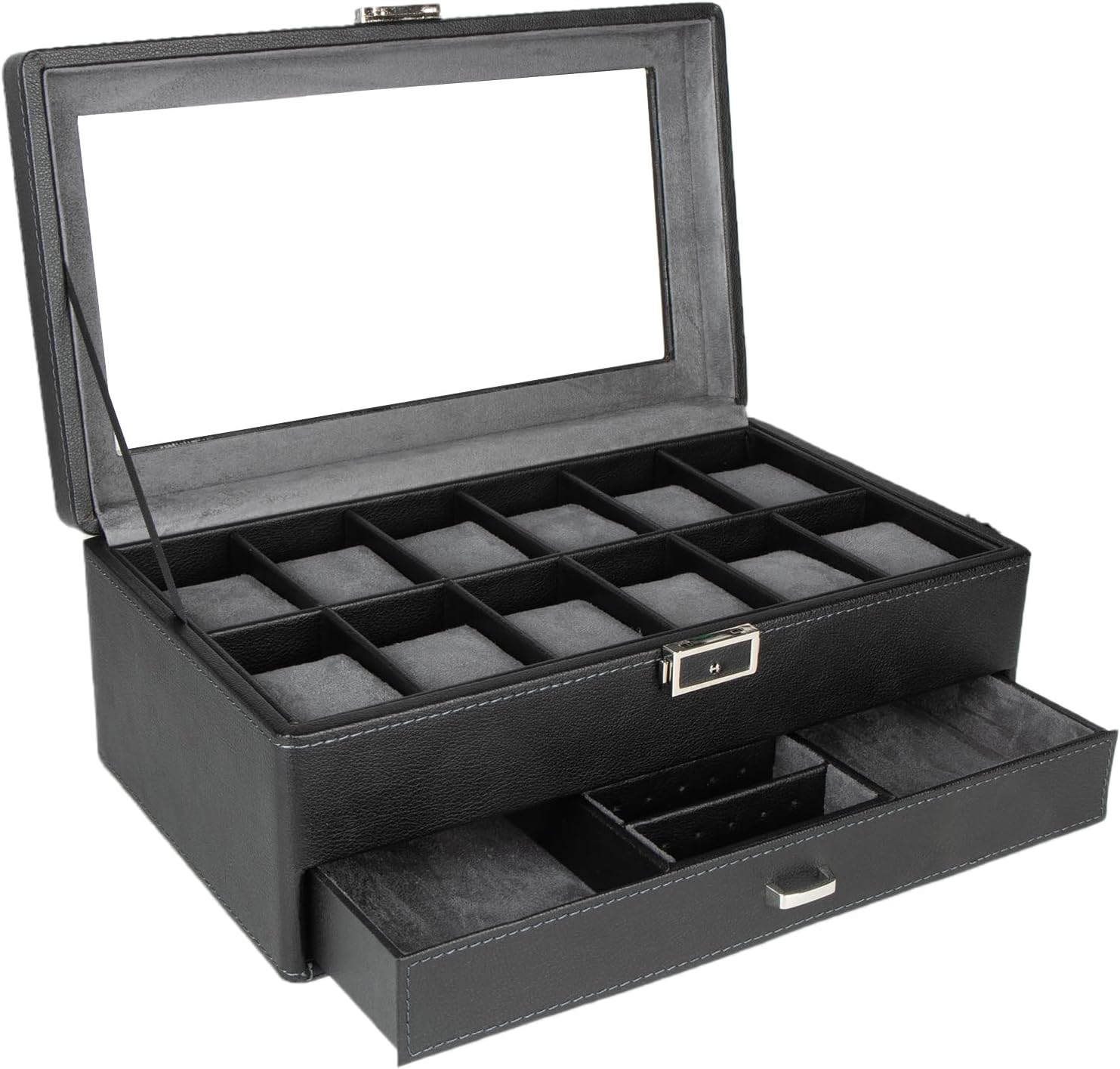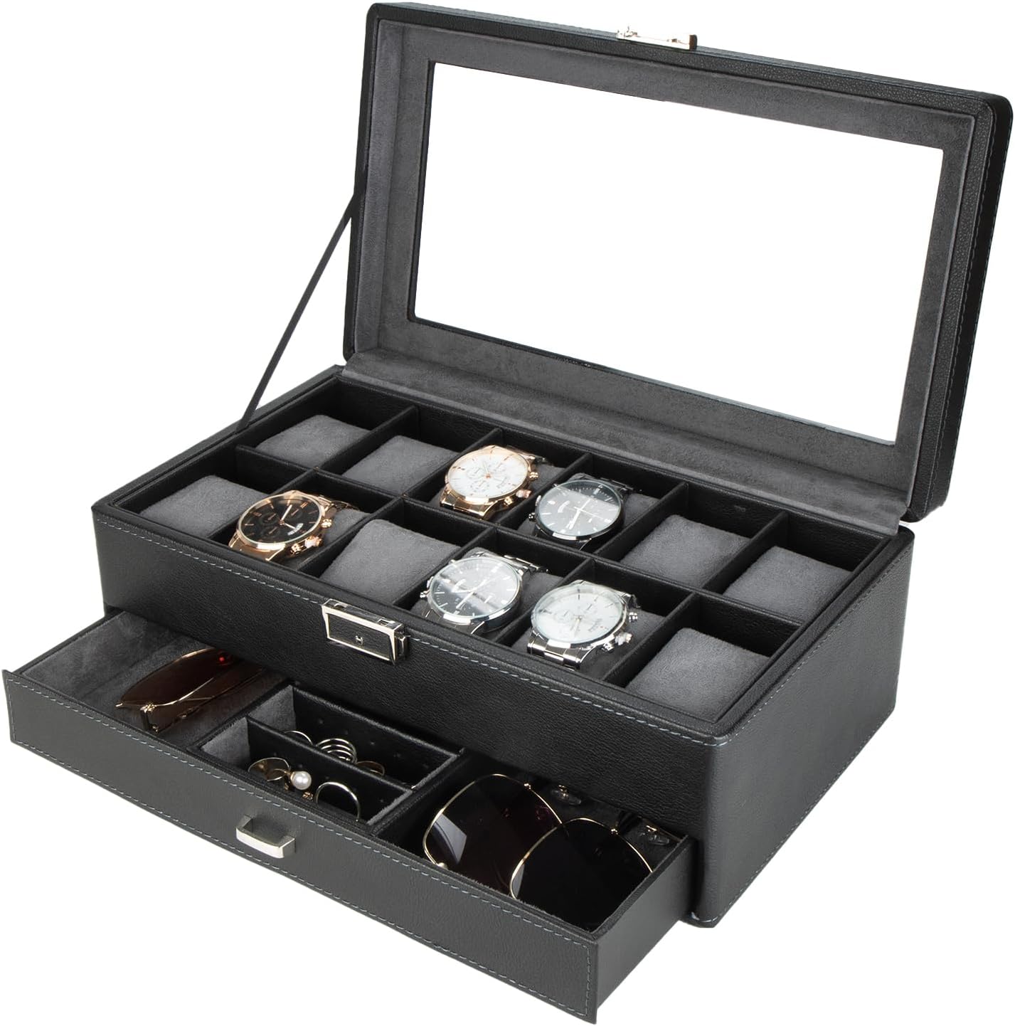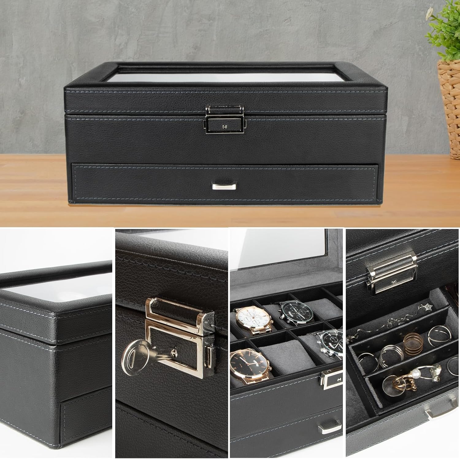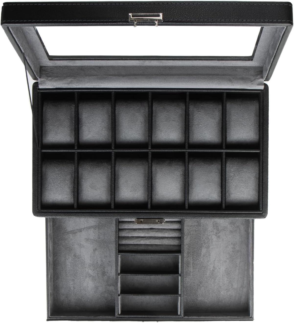 高級 2層 時計ケース 腕時計12本収納可能 ウォッチ収納ボックス ジュエリーボックス アクセサリー 指輪 ピアス コレクションケース PU製 ネックレス