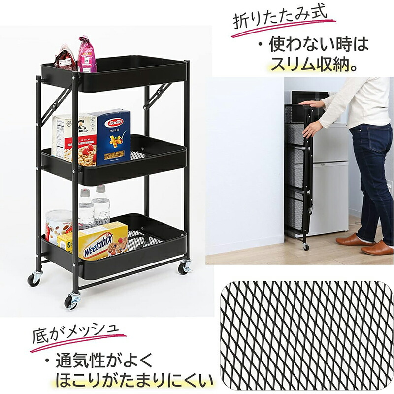 アストロ キッチンワゴン 3段 ブラッ ブラック ホワイト