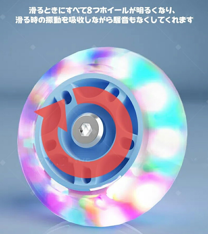 【ライト搭載】ホイールはABEC-7ベアリング採用して、スムーズを保証します!滑る時の振動を吸収しながら騒音もなくしてくれます。