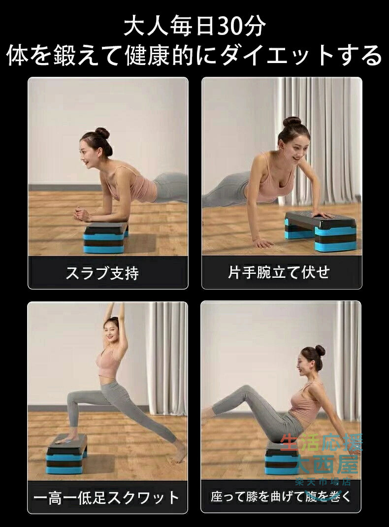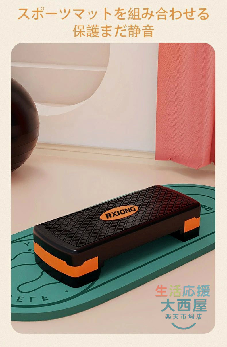 ステップ台 トレーニング 踏み台昇降 有酸素運動 室内 エクササイズ 2~4段階 防音防傷 マット付き 高さ調整