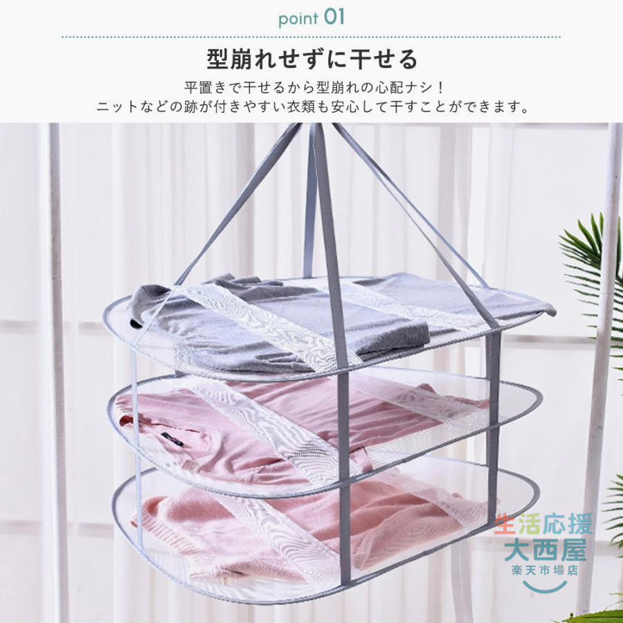 物干しネット ランドリーネット 平干しネット 3段構造 洗濯干しネット 型崩れ防止 衣類変形防止 ニットセーター 防風 折りたたみ 収納 大容量