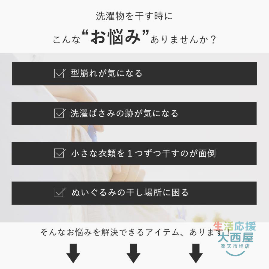 衣類変形防止、平らに置くことで重力を感じさせることなく干せるので伸びたり型崩れしたりハンガーの跡したりしません。ニット素材の物、セーター各種、ぬいぐるみ、枕に最適