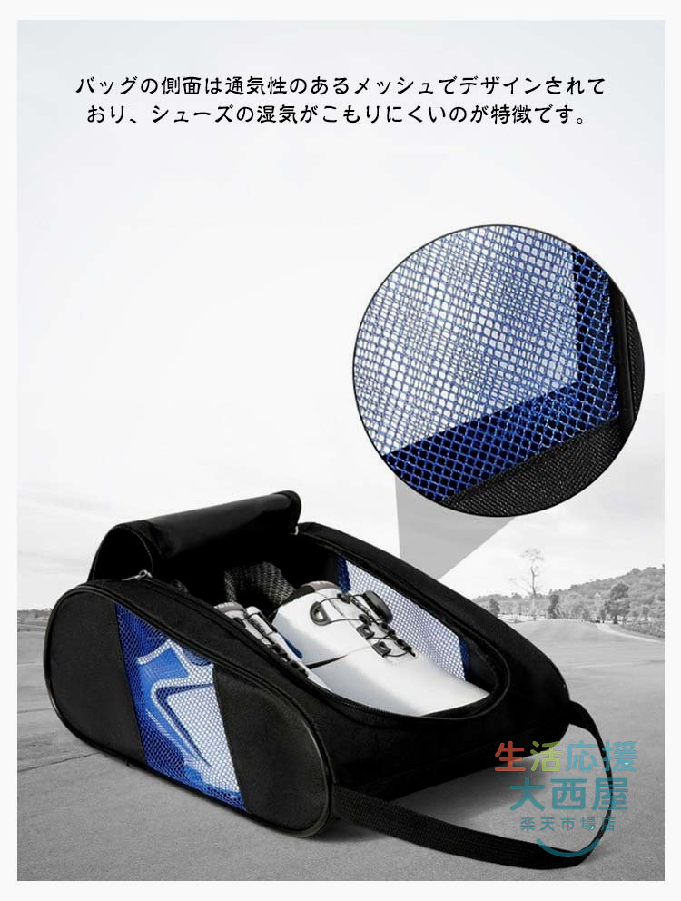 ゴルフシューズケース メンズ レディース 通気性メッシュ 軽量ナイロン シューズ収納 耐久性 レッド ピンク ブラック ブルー