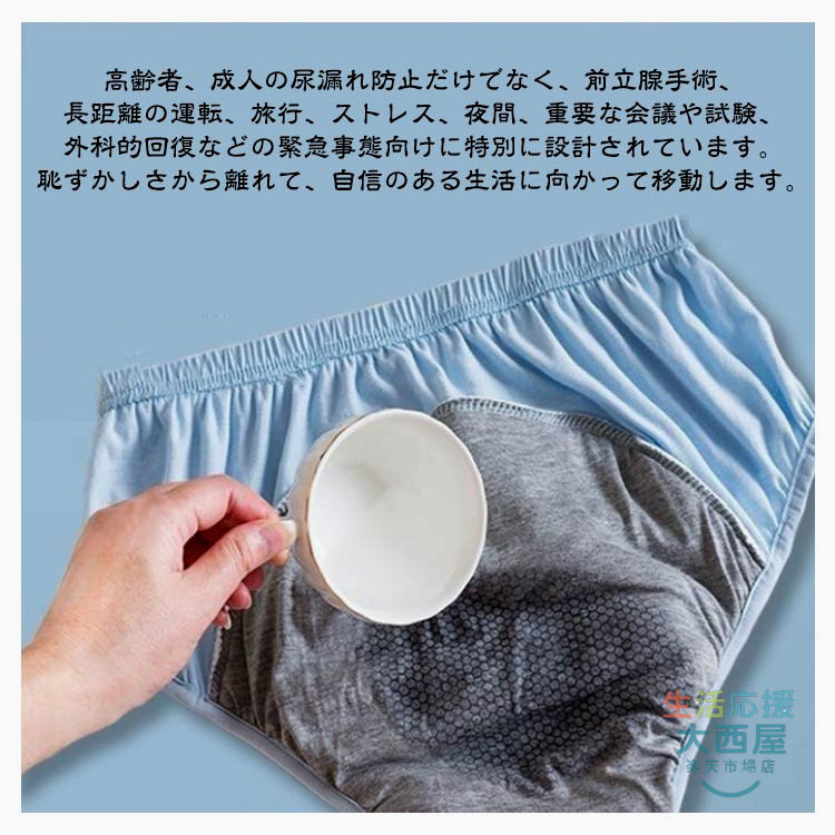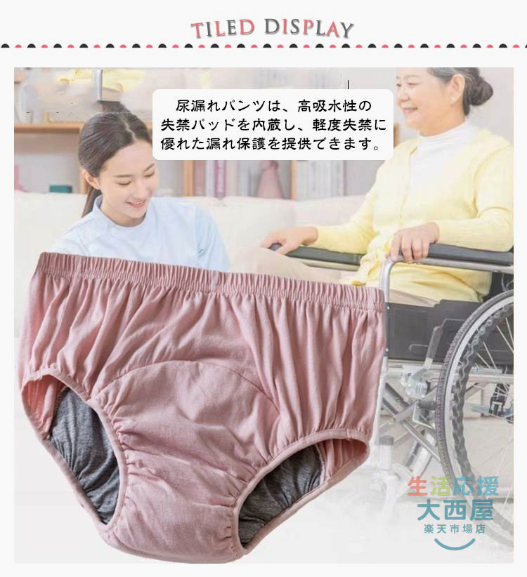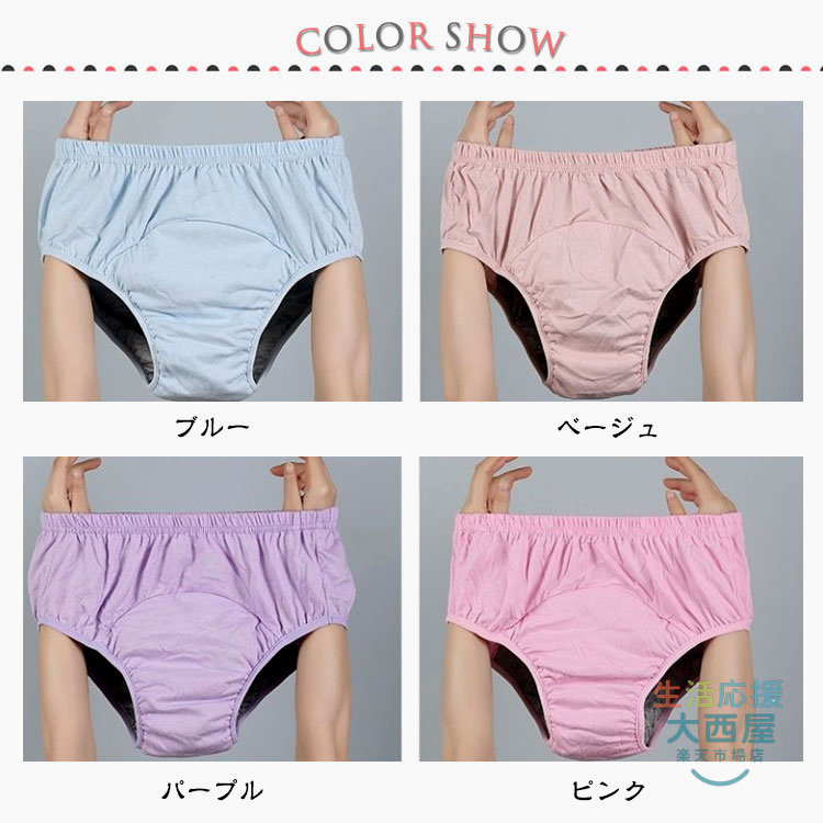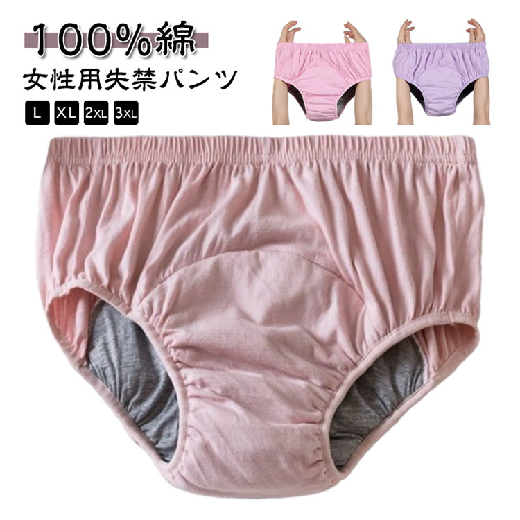 女性用失禁パンツ 綿100% 200c パープル ベージュ ブルー ピンク L XL 2XL 3XL