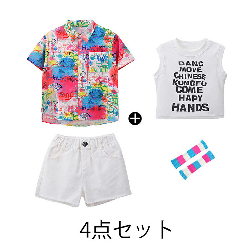チア チアガール 韓国 k-pop 総 キッズ ベビー マタニティ 特集 柄シャツ 短パン 柄シャツ+短パン 柄シャツ+短パン+タンクトップ 柄シャツ+短パン+脚カバー 4点セット 110cm 120cm 130cm 140cm 150cm 160cm 170cm 180cm