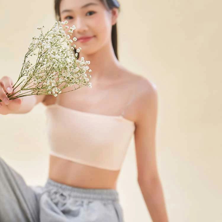 肌色 落ちない レディース ブラ スポーツウェア 透明 レッスン着 ストラップ 肩紐なし ダンス ノンワイヤー ストラップレス カップ付き
