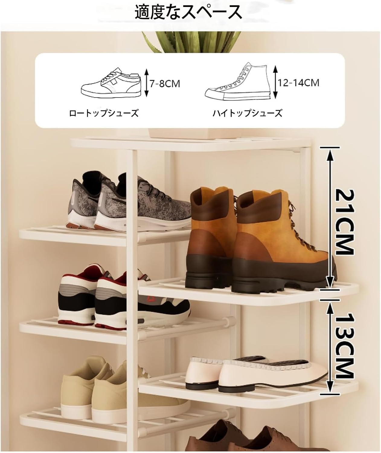 【高さの収納スペース】広い収納スペースで、靴の乱雑さによる家の中の散らかりの問題を解決することができます。綺麗にオシャレに収納する事ができます。