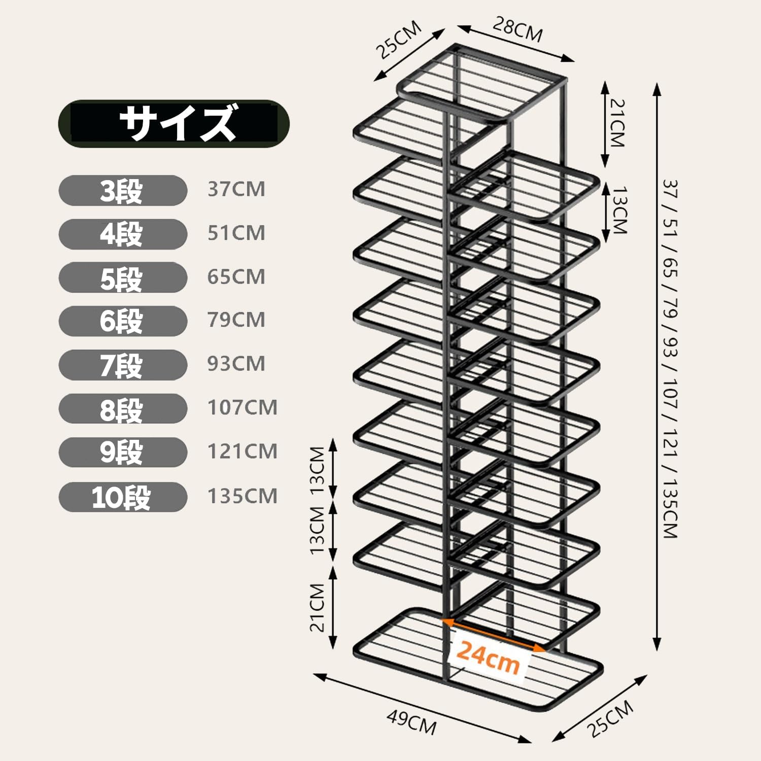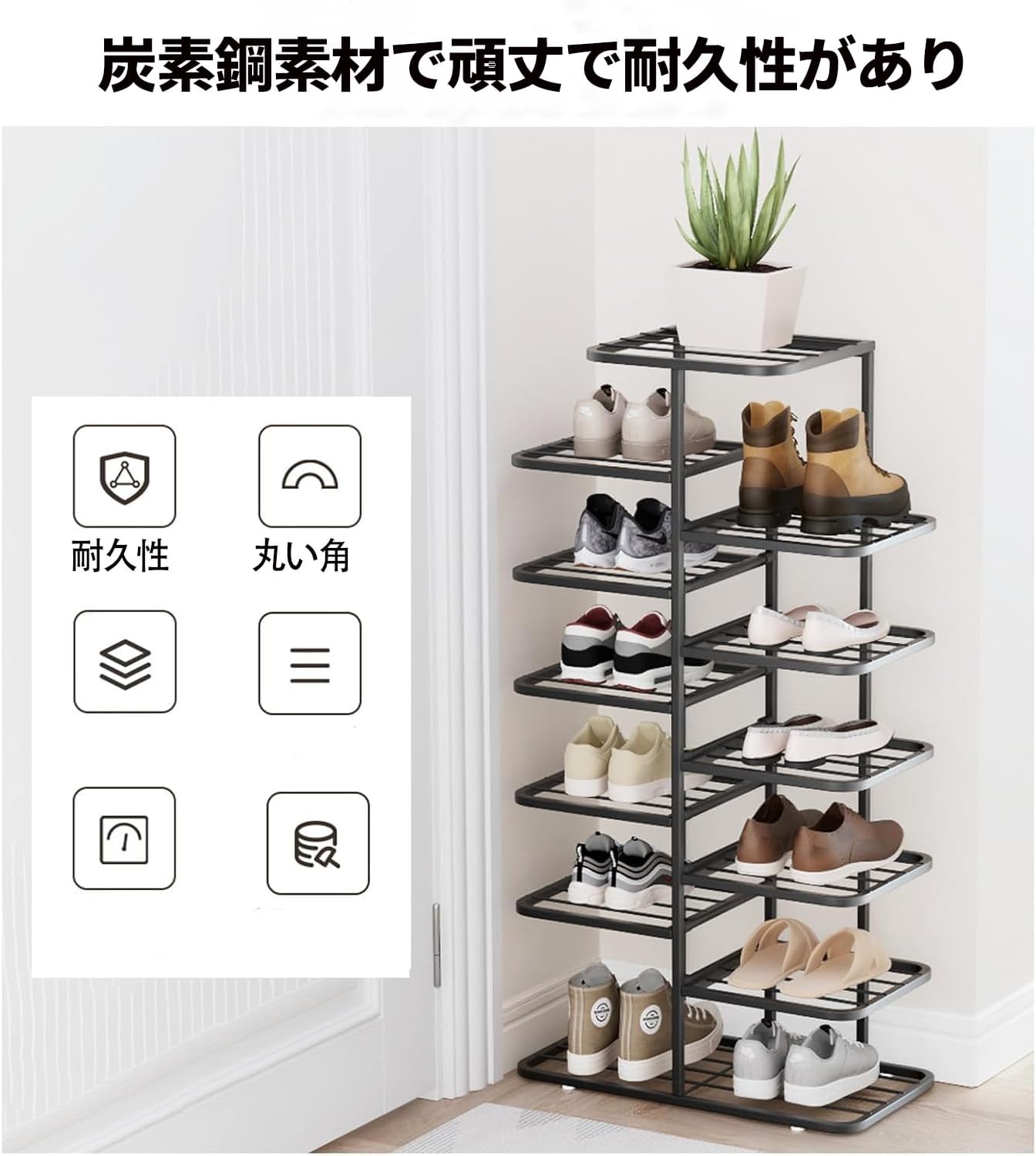 シューズラック 省スペース スリム 突 One color ゴールド ブラック ホワイト Free size 3段 9段 8段 10段 7段 5段 4段 6段