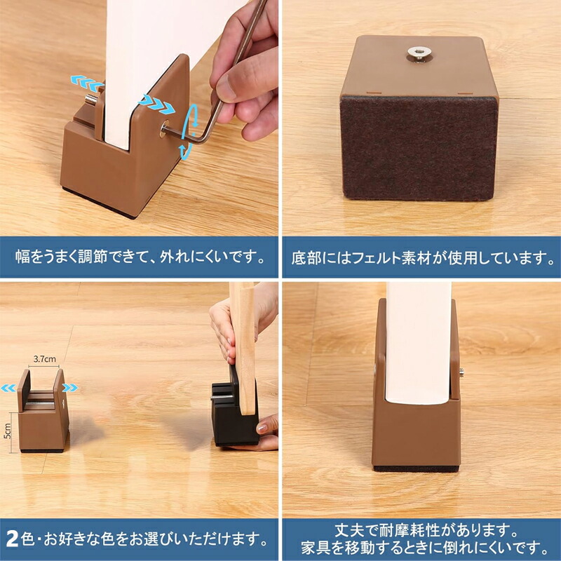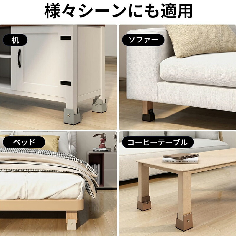高さ調整 継ぎ脚 ベッド テーブルの高さ調節 テーブル 脚 継ぎ足 継足し テーブル脚台 50 100mm高さを上げる 幅を調節できる 0mm~37mm 耐荷重500kg 4個セット