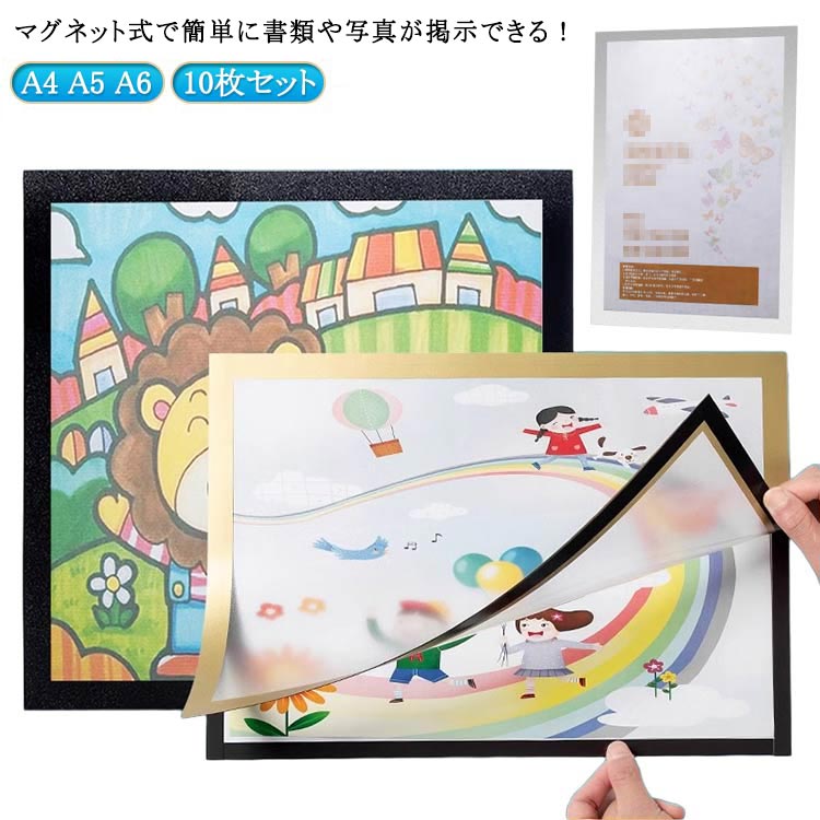 マグネットフレーム A4判 A5 A 10枚セット 差し替え式 マグネット ポケット 壁掛け フォト フレーム 書類 収納 ケース PVC製 マグネット冷蔵庫 店舗 オフィス 伝言 献立表 給食 メモ