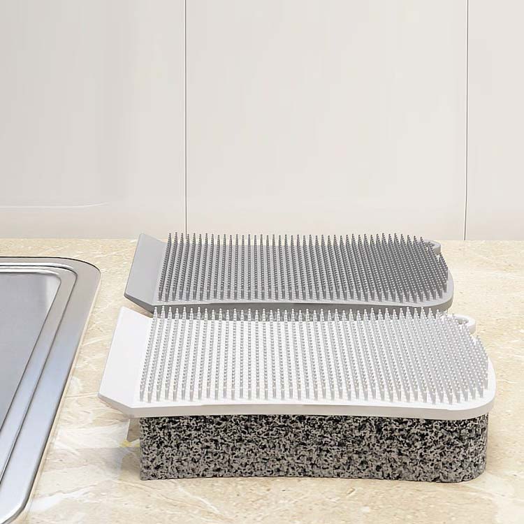 色々な汚れに対応できるよう、シリコンスポンジと目の細かいスポンジのリバーシブル構造になっています。
