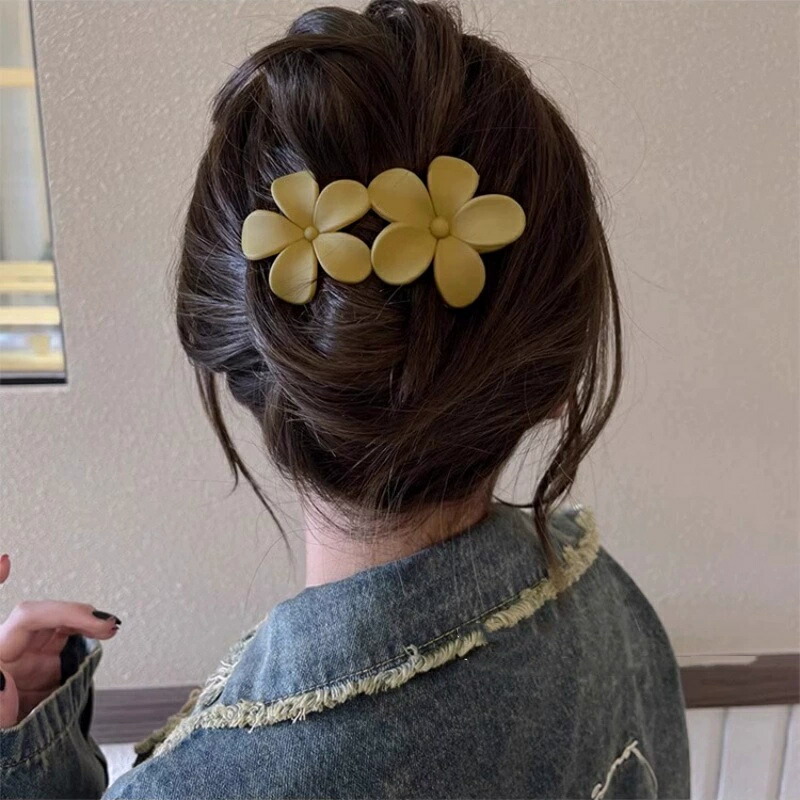ヘアクリップ 花形 サイドバンスクリッ キッズ アクセサリー バレッタ ヘアクリップ 人気 ブラック イエロー ブラウン ブルー 消しゴム色の赤 5色*1