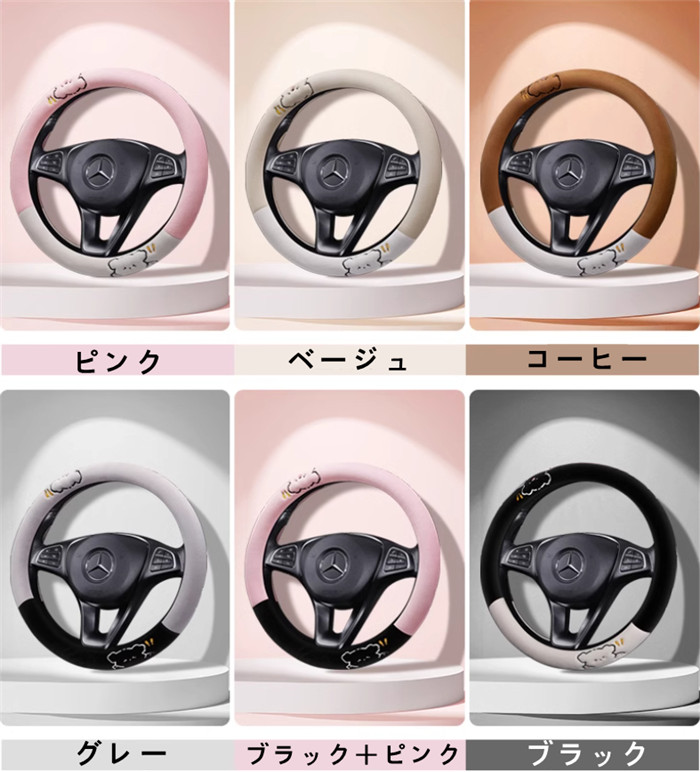 ハンドルカバー ステアリングカバー 普 ピンク ベージュ コーヒー グレー ブラック+ピンク ブラック