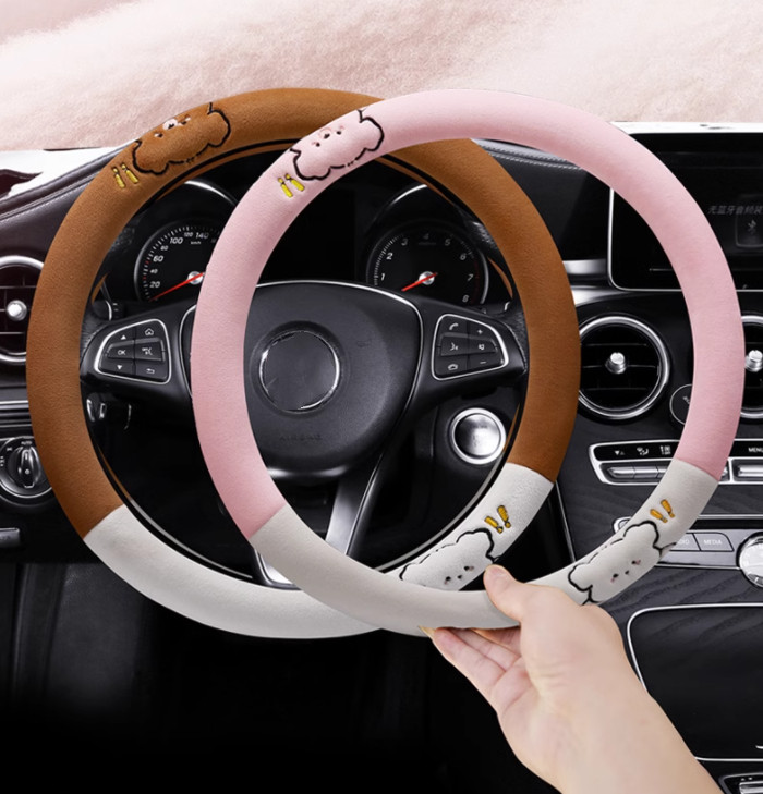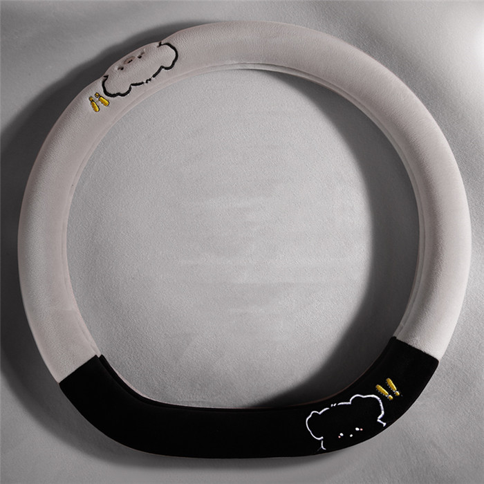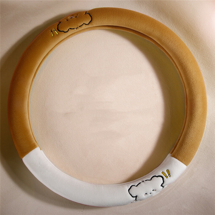 ハンドルカバー ステアリングカバー 普通車 軽自動車 自動車 ボア クマ柄 通気 38cm O型 D形 ビジネス おしゃれ かわいい 内装パーツ 握りやすい 高級感 滑り止め ドレスアップ 汎用