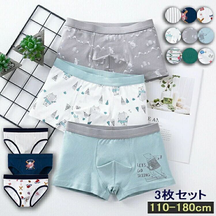 下着 ボクサーパンツ 男の子ショーツ 3枚セット キッズ ショーツ ブリーフ 肌着パンツ かわいい 高通気性 伸縮性 ジュニア学生 子供パンツ お洒落 110 120 140 150 160 130