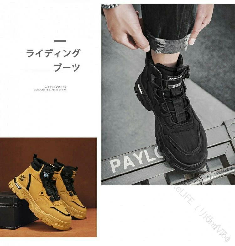 ライディングブーツ メンズ 厚底 ライ ブラック イエロー 24CM 24.5CM 25CM 25.5CM 26CM 26.5CM 27CM 27.5CM